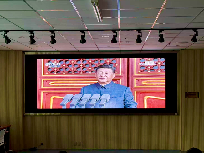 上午9时,当义勇军进行曲在天安门上空激昂奏响,阅兵仪式正式开始,雄壮的军乐声中,全体师生肃立,齐身高唱国歌。当习近平总书记“正义必胜!和平必胜!人民必胜!”的坚定话语在会场上响起,现场师生的热情被瞬间点燃,情不自禁地爆发出热烈掌声。这简短有力的话语,让大家深刻感悟到和平的来之不易,那是无数先烈用鲜血和生命换来的。