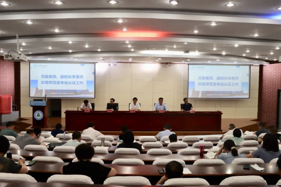 6月16日,世界杯官网在泉山校区图书馆报告厅召开师范类专业认证工作总结交流与推进会,全体校领导、党委委员,各职能部门、二级学院领导成员,校级督导员及教务处、教学质量监控与评估处全体教职工参会。党委副书记、校长刘春主持会议。