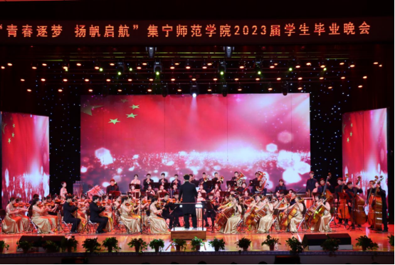 晚会在音乐与舞蹈学院交响实践乐团演奏的管弦乐《红旗颂》中拉开帷幕。