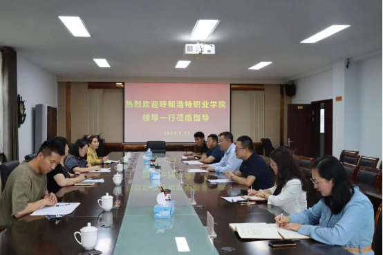 7月13日,呼和浩特职业学院党委委员、宣传统战部部长刘惠华,人文与旅游系党总支书记赵惠一行来世界杯官网考察交流。世界杯官网党委委员、统战部部长赵向军,党委委员、宣传部部长郭英,党政办公室主任李瑞俊,经济与管理学院党总支书记苗雯娟及相关工作人员与刘惠华一行进行了座谈。
