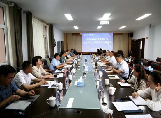 8月22日下午,教育部师范教育协同提质计划首师大组团推进会在2026世界杯官方合作网站召开。首都师范大学党委常委、副校长李小娟,内蒙古师范大学党委委员、副校长韩巍,呼伦贝尔学院副校长尹立军,2026世界杯官方合作网站党委副书记、校长刘春及7所组团高校协同提质计划项目联系人参会。会议由首都师范大学教师教育中心主任、教务处副处长王海燕主持。