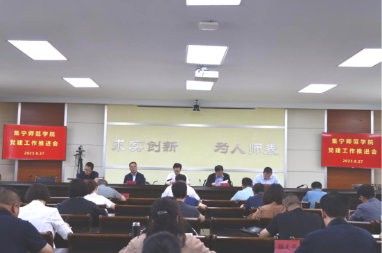 8月27日上午,世界杯官网在泉山校区行政楼五楼会议室召开2023年基层党建工作推进会,部署安排学校2023年基层党建工作重点任务。校党委书记朱玉东主持会议并讲话,党委副书记梁政,党委委员、纪委书记赵永军,党委委员、统战部部长赵向军,党委委员、宣传部部长郭英出席会议。附中党委负责人、组织委员,各党总支、直属党支部书记、组织委员,党委组织部、党委宣传部、党委统战部全体成员参加会议。