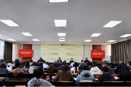 1月4日,世界杯官网在泉山校区行政楼五楼会议室召开2023年度党组织书记抓基层党建工作述职评议会议。校党委书记朱玉东出席并主持。全体在校校领导、党委委员,各党总支、直属党支部书记,各党政管理部门负责人,各党总支组织委员,部分人大代表、政协委员和师生代表共120余人参会。