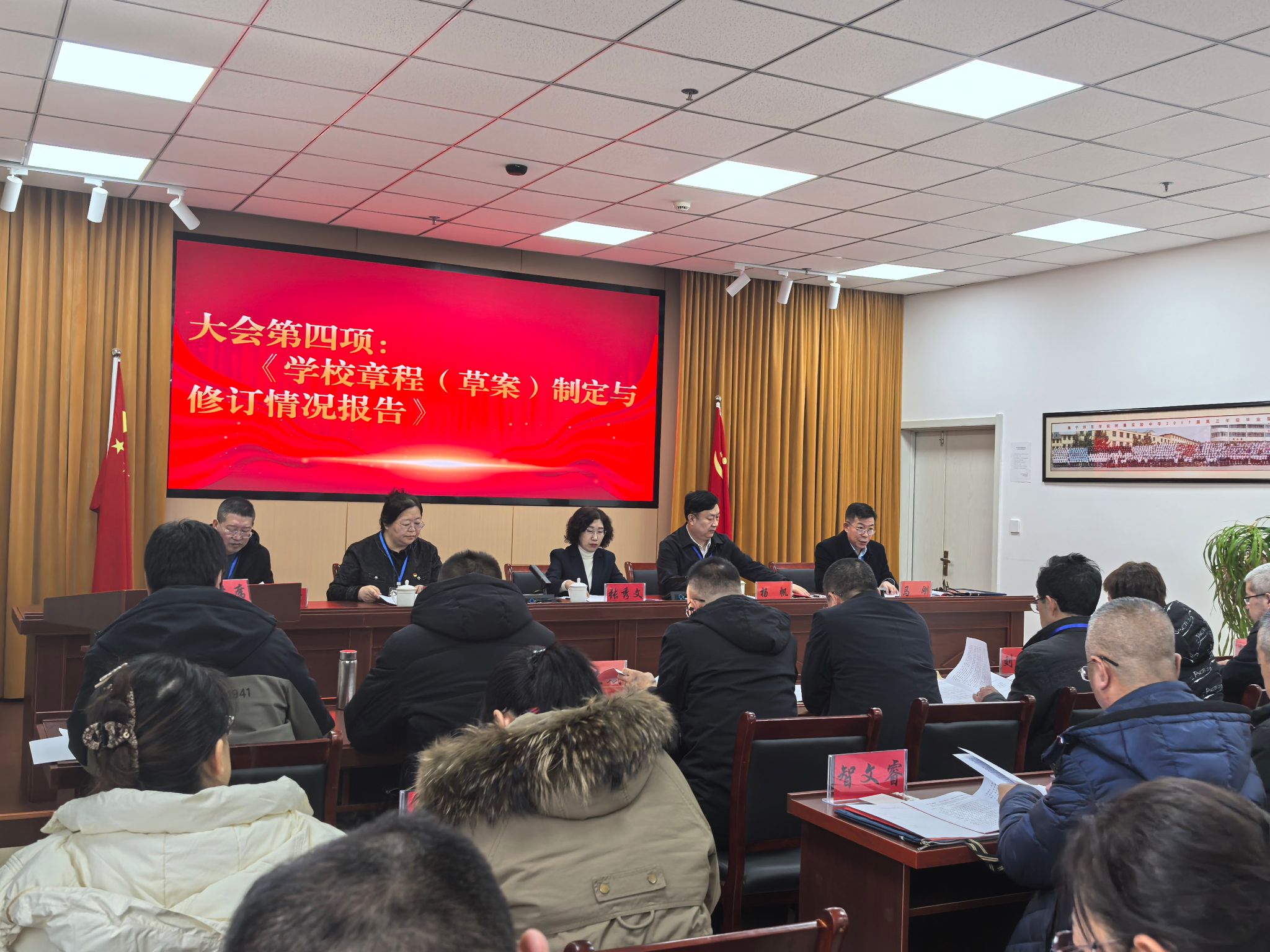 大会听取了附中党委书记杨帆所作的《学校章程草案制定与修订情况报告》。报告对章程草案制定的背景、依据、主要内容、制定过程以及对学校长远发展的重要意义等方面进行了深入解读,帮助各位代表更好地理解其内涵。大会听取了附中党委副书记、校长常慧芳所作的《学校年度工作报告》及《财务工作报告》。报告全面回顾和总结了过去一年学校所开展的工作及取得的成效,并详细阐述了2026年学校的工作计划,明确了下一阶段学校工作的重点方向和具体举措,为学校工作的持续推进提供了清晰的指引;报告系统梳理了2025年度财务收支及管理情况,数据翔实、结构严谨,充分体现了学校财务工作规范、透明、高效的运行机制,展现了厉行节约、精细管理的良好作风。