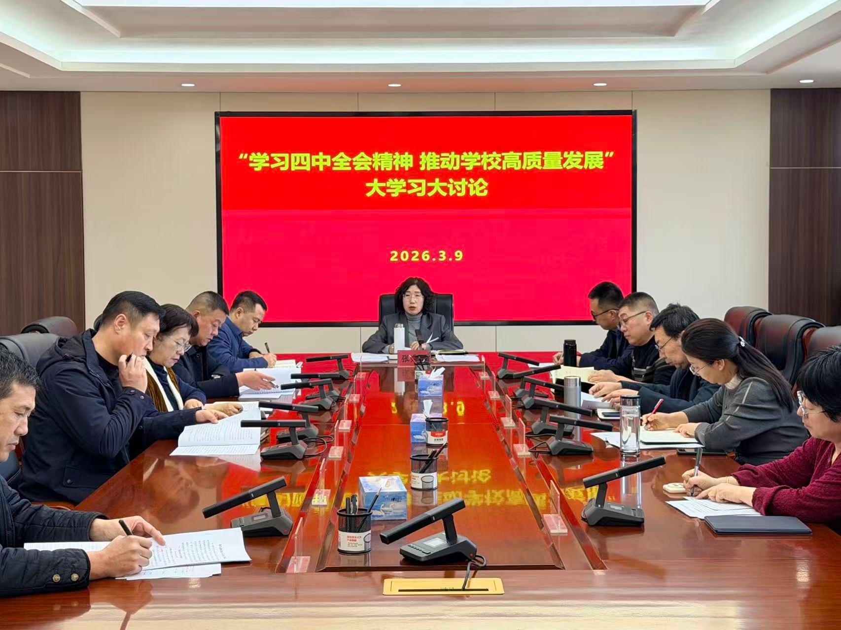 3月9日,党委委员、副校长张秀文主持召开分管部门“学习四中全会精神 推动学校高质量发展”大学习大讨论调研座谈会。学生处、招生就业处、后勤基建处、校园安全管理处、网络中心、图书馆、学报编辑部、国际交流学院班子成员参加会议。