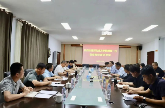 6月26日上午,河北北方学院党委副书记张明柱、纪委书记张彪一行到世界杯官网考察调研。世界杯官网党委副书记梁政、纪委书记赵永军,相关职能部门负责人、相关科室负责人参加见面会并进行分组交流。