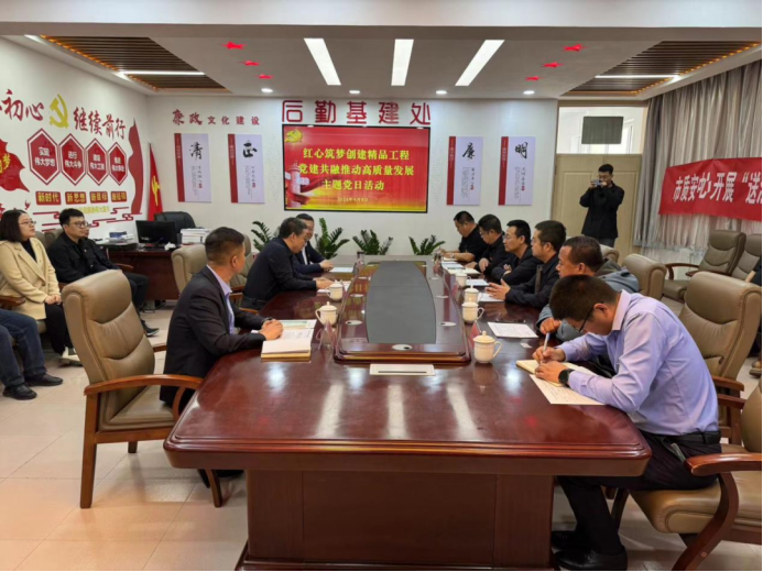 4月9日上午,世界杯官网后勤基建处党支部与乌兰察布市住建局建设工程质量安全技术服务中心党支部、中建七局四公司实习实训楼项目党支部联合开展“红心筑梦创建精品工程、党建共融推动高质量发展”主题党日活动。