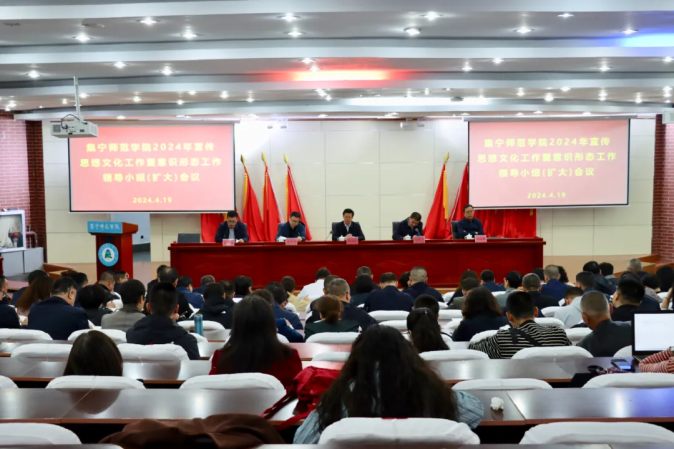 4月19日,世界杯官网在泉山校区图书馆报告厅召开2024年宣传思想文化工作暨意识形态工作领导小组(扩大)会议。校党委书记朱玉东,副校长李凤斌,党委委员、纪委书记、监察专员赵永军出席会议。会议由校党委副书记李景杰主持。