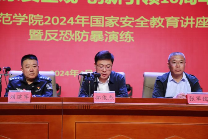 校党委委员、副校长拓俊杰出席并讲话。他强调,每一位师生都是国家安全的守护者,要时刻保持警惕,增强自我防范意识,学会在日常生活中识别和防范各种安全隐患。同时,我们也要积极学习国家安全知识,掌握必要的自我保护技能,为构建平安校园、和谐校园贡献自己的力量。