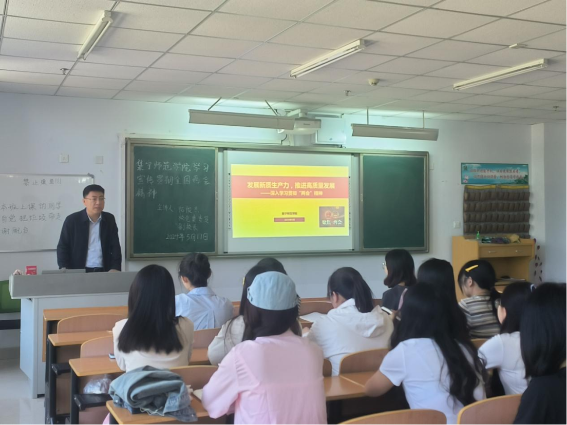 拓俊杰以“发展新质生产力推进高质量发展”为题,以十大任务和十个关键词为切入点为师生党员讲解了政府工作报告和“两高”工作报告,最后结合实际重点讲解了“新质生产力”和“未来产业”,并对师生党员提出了要求,认真学习两会精神,深刻领会国家政策导向,勇担时代使命,切实将理论学习转化为实际行动,为学校高质量发展再建新功。