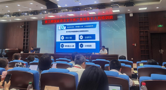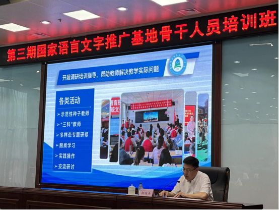 5月17日—21日,第三期国家语言文字推广基地骨干人员培训在国家教育行政学院举行,世界杯官网党委委员、副校长、国家语言文字推广基地(2026世界杯官方合作网站)主任拓俊杰到会作经验交流。