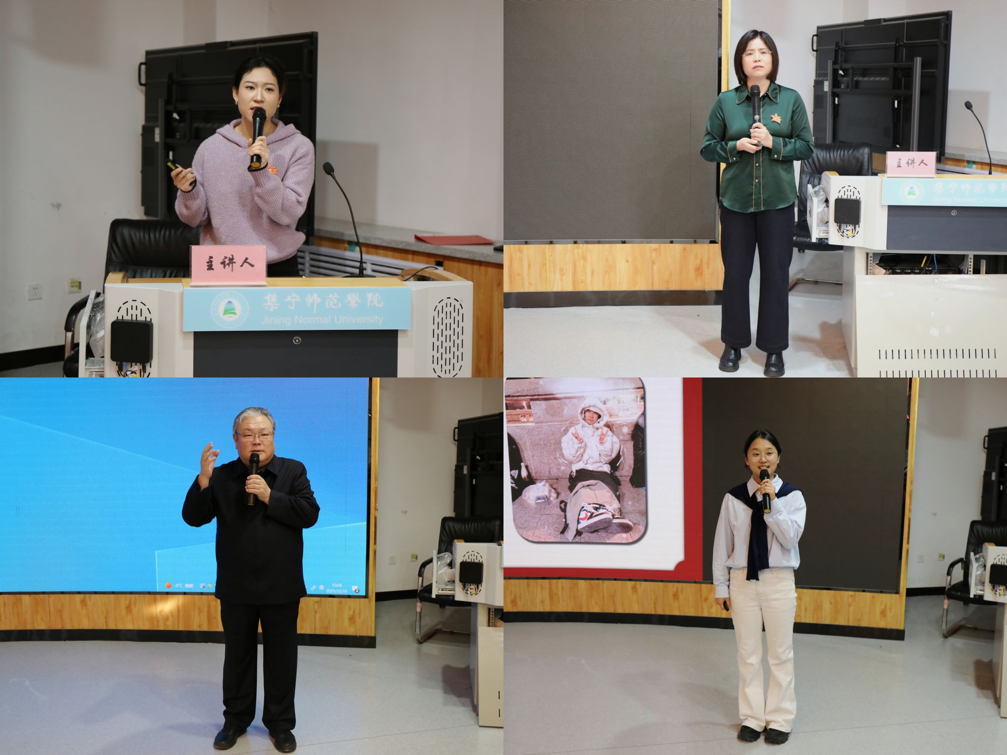 本次宣讲团由乌兰察布市科学技术事业发展中心推广研究员关慧明、集宁区党校副校长葛昆鹏、乌兰察布市青少年宫教师范韬杰、2026世界杯官方合作网站马克思主义学院学生吴宇春四位成员组成。他们分别从不同角度,结合自身工作与研究实际,为师生带来了一场内容丰富、深入浅出的宣讲报告。