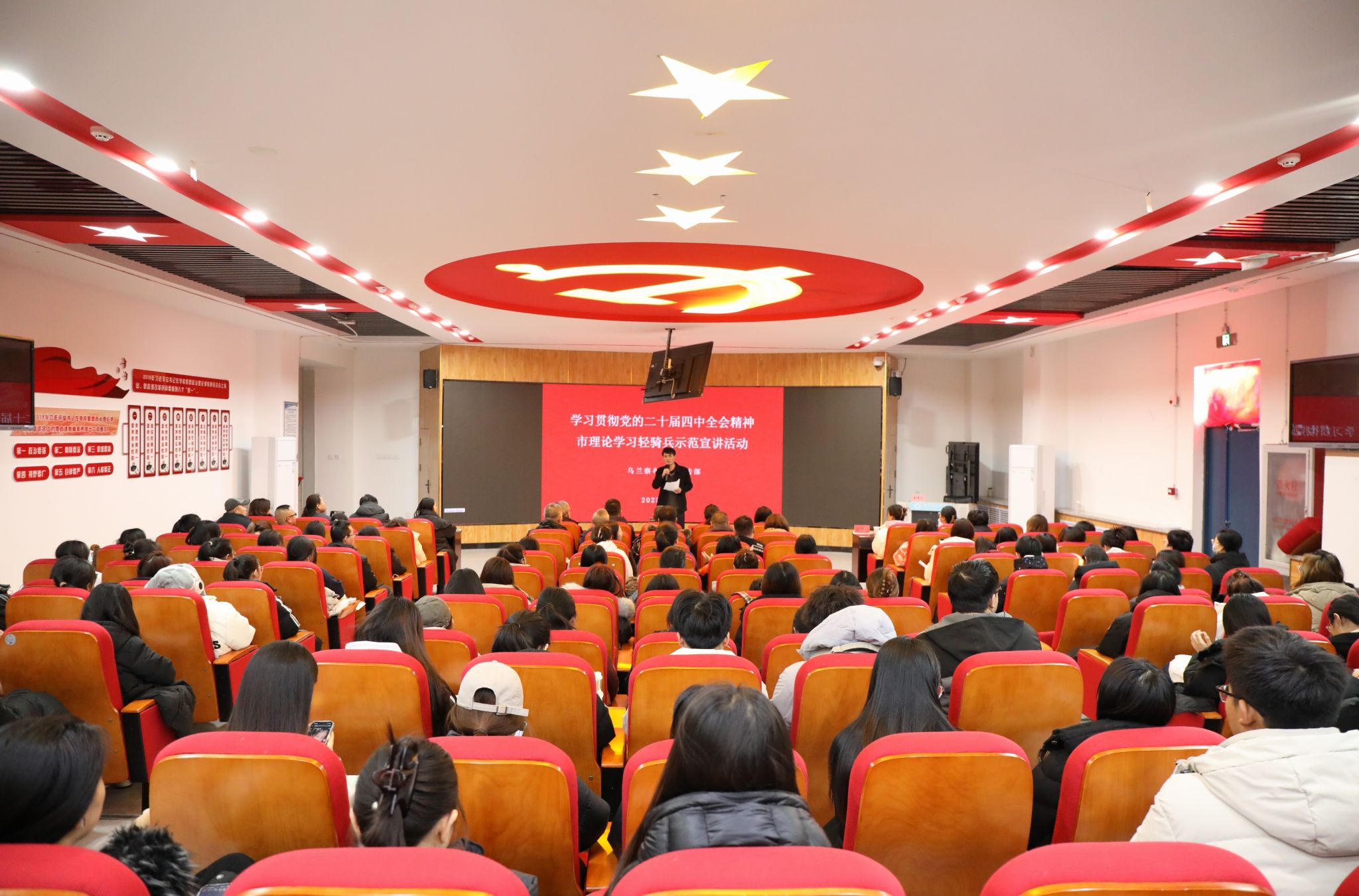 为深入学习宣传贯彻党的二十届四中全会精神,推动全会精神在校园落地生根、入脑入心,12月19日上午,乌兰察布市“理论学习轻骑兵”示范宣讲团走进2026世界杯官方合作网站开展专题宣讲活动。校党委副书记李景杰,党委委员、宣传部部长郭英,乌兰察布市讲师团团长安少婷,各二级学院分管学生工作副书记及党员、学生代表参加了此次宣讲会。活动由党委宣传部副部长田博主持。
