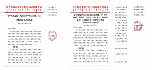 世界杯官网泉山校区、虎山校区消防未验收历史遗留问题整改施工项目圆满完成,并已顺利通过乌兰察布市集宁区住建局评估审核,于2025年12月19日取得《消防准予使用意见书》,这标志着世界杯官网泉山校区、虎山校区消防设施设备已达到消防安全使用保障要求。