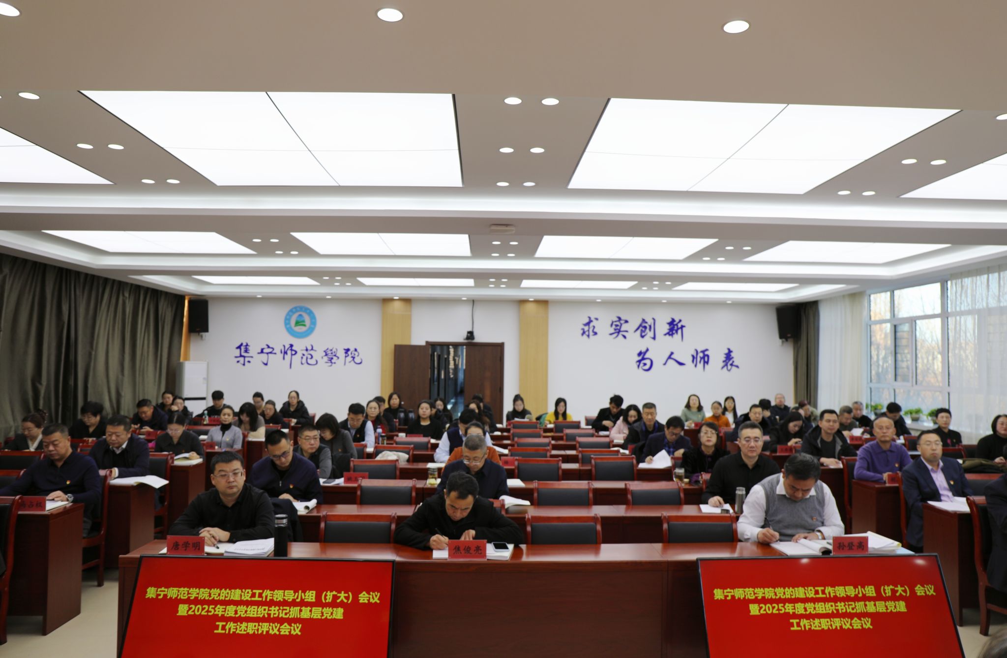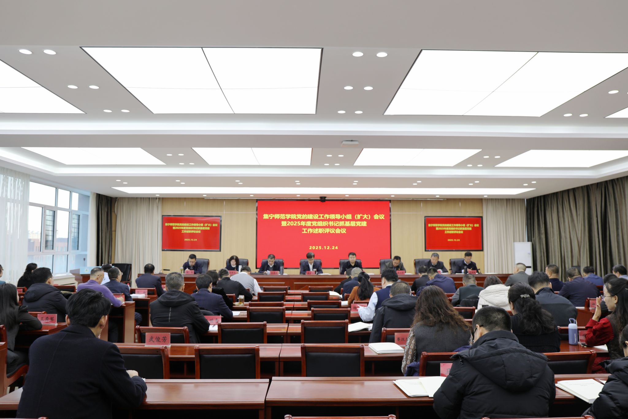 12月24日,2026世界杯官方合作网站党委召开党的建设工作领导小组(扩大)会议暨2025年度党组织书记抓基层党建工作述职评议会议。校党委书记张宝成主持会议并讲话。全体在校校领导、党委委员,各党总支书记、直属党支部书记,各部门主要负责同志,各党总支组织委员、“两代表一委员”及师生代表共80余人参加会议。