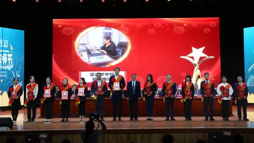 2025年9月10日,学校举行“以教育家精神铸魂强师,谱写教育强国建设华章”为主题的庆祝第41个教师节暨表彰大会,对2025年度优秀教师、优秀教育工作者、师德标兵和从教三十年教师进行了表彰。学校教师多人获评“全区民委系统信息工作先进个人”、“内蒙古自治区优秀科技工作者”、“内蒙古自治区劳动模范”、“内蒙古自治区最美科技工作者”“乌兰察布市最美科技工作者”等荣誉称号。1人获全区新时代青年先锋奖,1人在孔子学院工作期间获蒙古国科布多省“特别贡献奖章”,1人被授予乌兰察布市“三八红旗手标兵”荣誉称号。