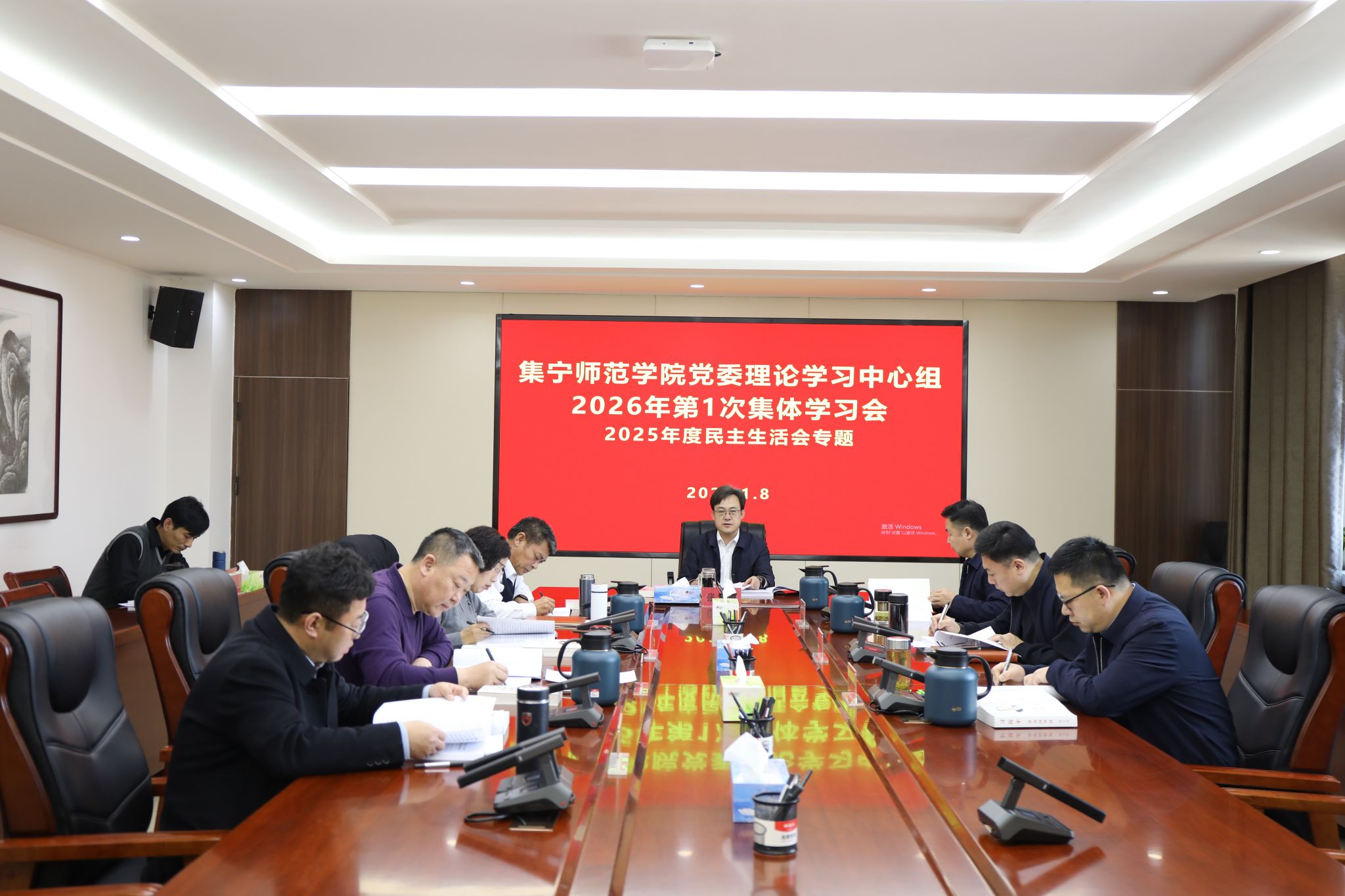 为深入学习贯彻习近平新时代中国特色社会主义思想和习近平总书记系列重要讲话重要指示精神,全面落实党中央、自治区党委相关决策部署,扎实做好2025年度民主生活会筹备工作,1月8日下午,世界杯官网召开党委理论学习中心组2026年第1次集体学习会暨2025年度民主生活会会前专题学习会。校党委书记、党委理论学习中心组组长张宝成主持会议并讲话,校党委理论学习中心组成员参加会议。