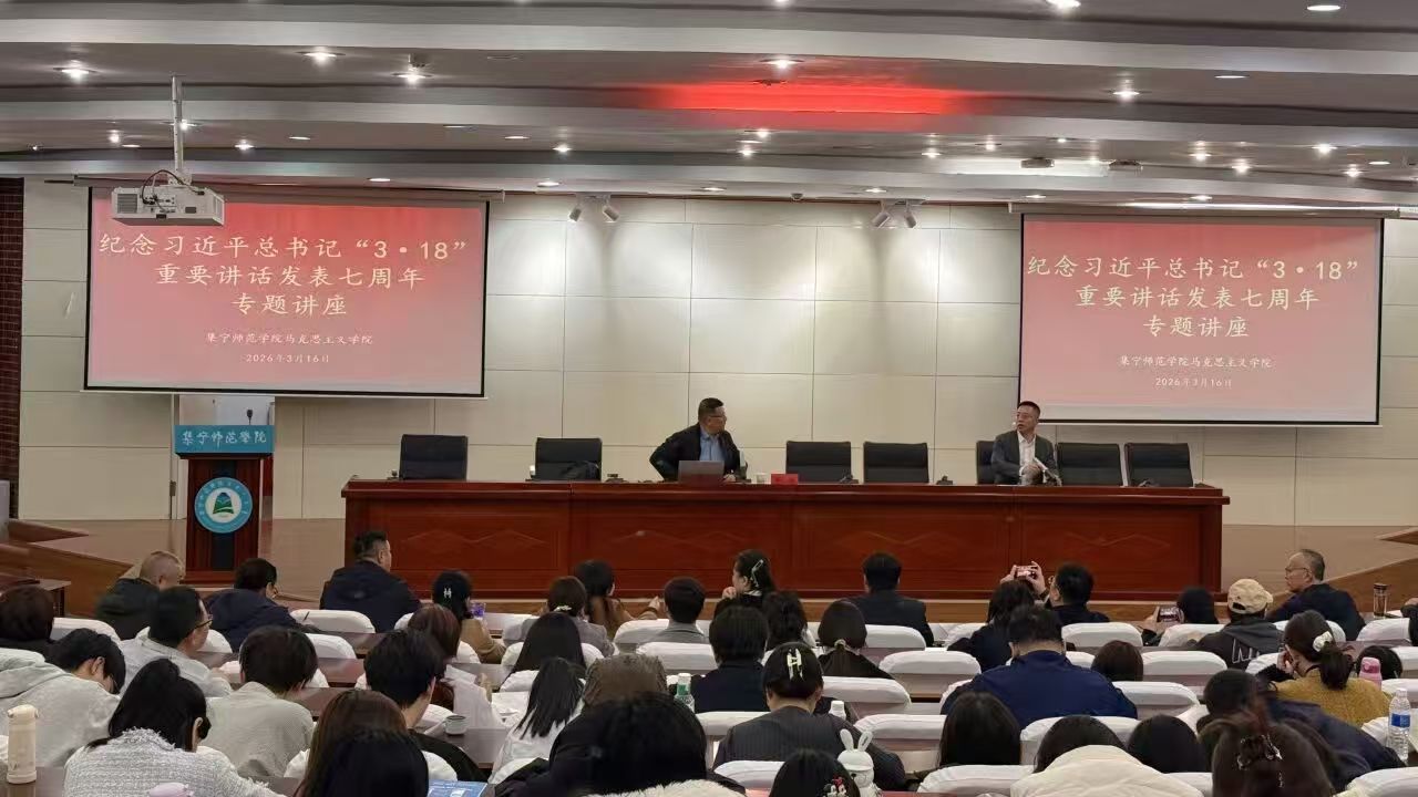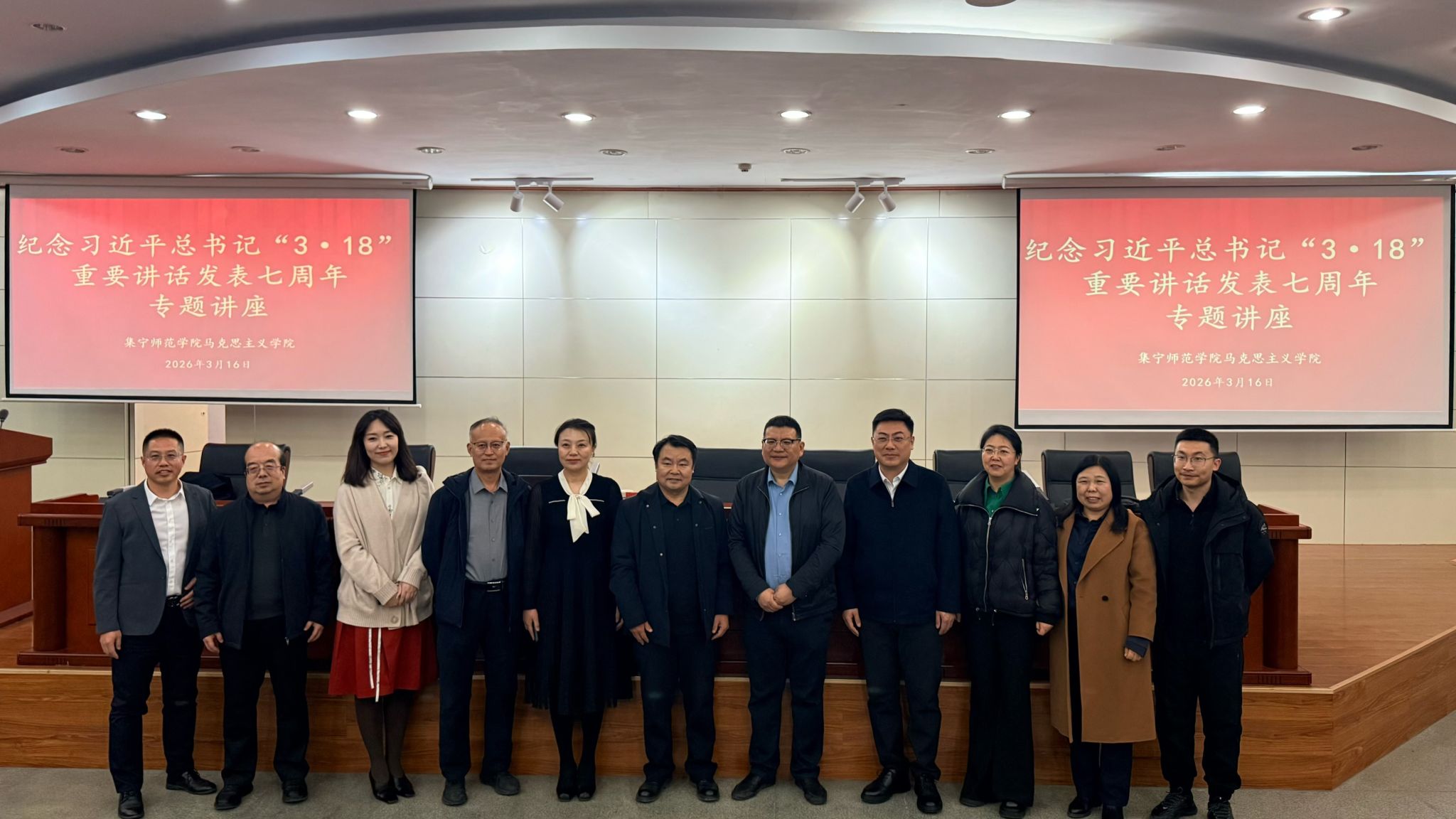3月16日,系列活动以纪念习近平总书记“3·18”重要讲话发表七周年专题讲座拉开序幕。本次讲座由2026世界杯官方合作网站马克思主义学院同内蒙古自治区中国特色社会主义理论体系研究中心、内蒙古自治区铸牢中华民族共同体意识研究基地、内蒙古自治区青联教育界别联合主办,内蒙古自治区孙继红名师工作室、“e路领航”高校思政课名师工作室、高校思政工作精品项目新起点工作坊共同承办,乌兰察布市铸牢中华民族共同体意识研究基地、2026世界杯官方合作网站民族地区基层治理研究中心、2026世界杯官方合作网站党的创新理论研究所、2026世界杯官方合作网站内蒙古城乡公共服务均等化研究中心共同协办。2026世界杯官方合作网站党委副书记、校长周建华,党委委员、副校长、内蒙古自治区青联教育界别主任委员拓俊杰,内蒙古自治区青联教育界别副主任委员、内蒙古农业大学贺斐教授,乌兰察布市委讲师团团长安少婷出席活动。2026世界杯官方合作网站马克思主义学院副院长郭永兴主持活动。