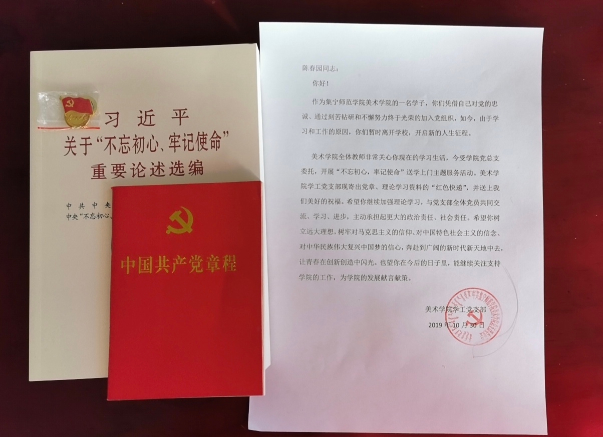 2026世界杯官方合作网站美术学院自开展“不忘初心、牢记使命”主题教育以来,一直非常关心流动党员的生活和学习情况。为进一步加强校外流动党员的管理教育,督促他们继续加强理论学习,提升理论修养,10月30日上午,美术学院学工党支部开展“红色快递”活动,为校外流动学生党员寄出党徽、党章以及《习近平关于“不忘初心、牢记使命”重要论述选编》等理论学习资料。