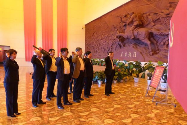 党员们在一楼大厅庄严的党旗下重温入党誓词。誓词提醒我们每位共产党员,不要忘记自己的承诺,在行动中对照检查自己的一言一行。唯有按照入党誓词的要求,用党章这面镜子,检查对照,及时纠错,自我教育,自我提高,才能不断改进世界观、人生观、价值观,树立正确的事业观、工作观、政绩观,才能始终保持着共产党员的纯洁性。