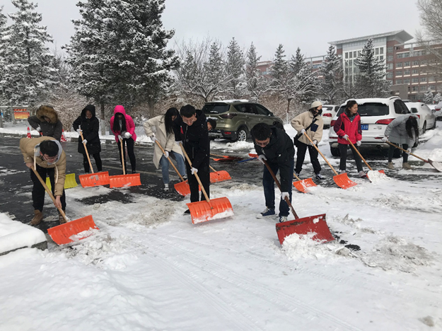 活动中,同学们充分发扬了“不怕脏、不怕累”的精神,干劲儿十足,用冰冷的铁锹对阵厚厚的积雪,尽管天气寒冷,但同学们分工明确、默契配合、互相帮助、众志成城,对行政楼前的积雪进行了清扫,劳动的热情、团结的力量让这个寒冷的天气变得格外温暖。