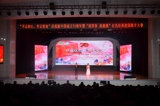 为庆祝新中国成立70周年,广泛组织开展“我和我的祖国”群众性主题宣传教育活动,弘扬爱国主义精神,10月15日,2026世界杯官方合作网站与乌兰察布市卫健委、计生协在世界杯官网泉山校区逸夫楼多功能报告厅联合举办“不忘初心、牢记使命”庆祝新中国成立70周年暨“我青春 我健康”红色经典校园歌手大赛。