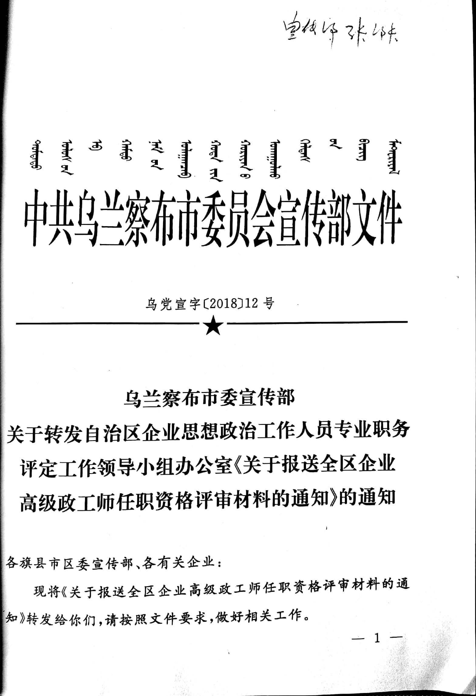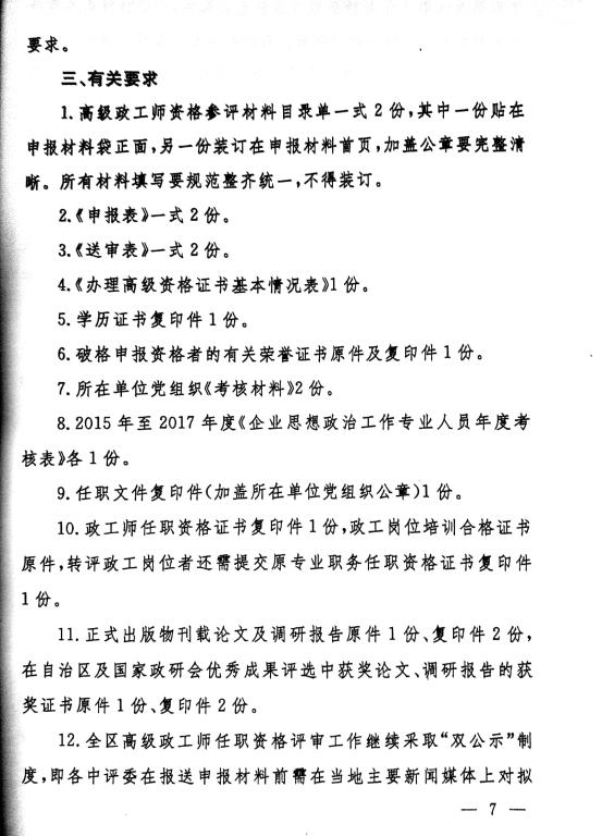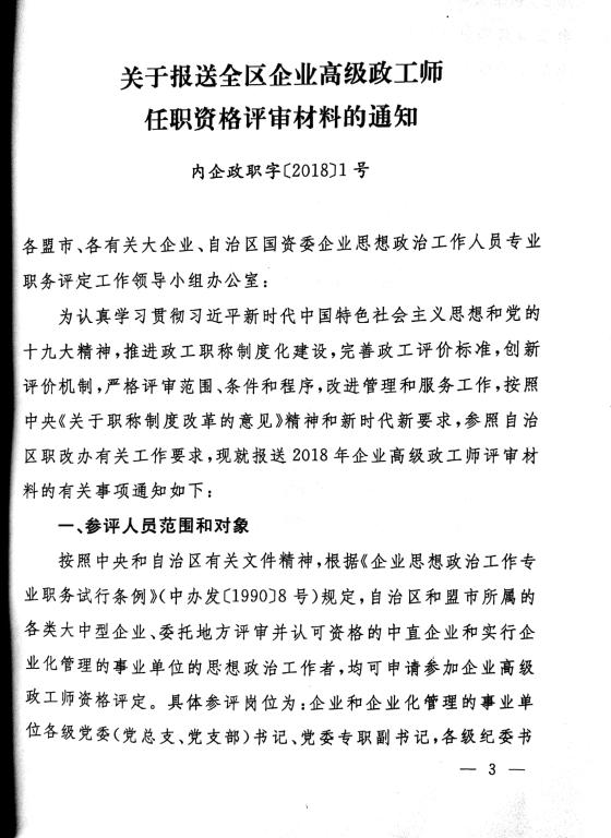 关于转发《关于报送全区企业高级政工师任职资格评审材料的通知》的通知