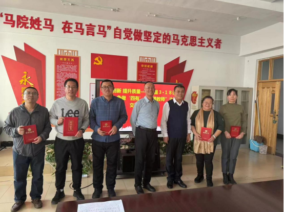 随后,教师代表做了热情洋溢的表态发言,表明了守正创新、踔厉奋发、勇毅前行的学习态度和决心。并由李景杰、刘国义、胡志胜为2023年度马克思主义学院评选的党员名师和党员先锋颁发荣誉证书