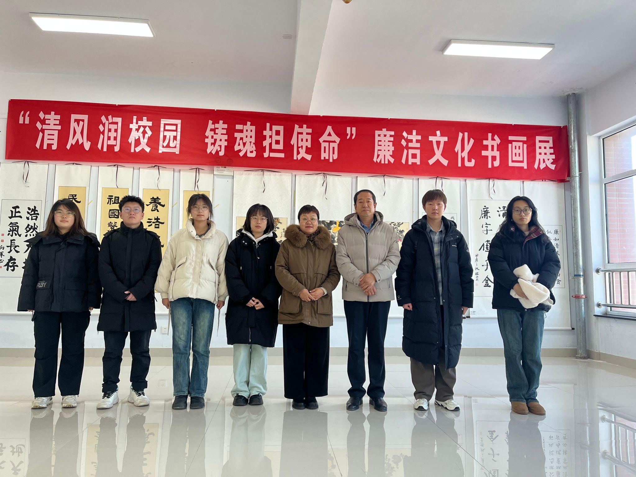 活动中师生一起参观了“清风润校园 铸魂担使命”文化书画展,审计处的老师与六位同学进行了座谈交流。