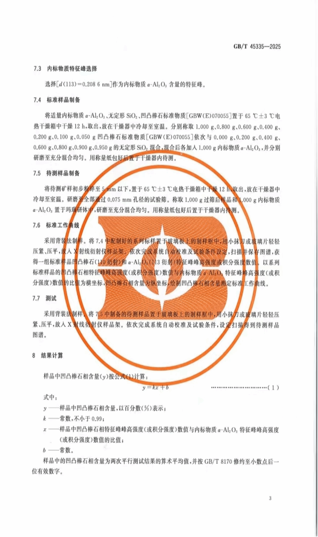 2025年2月28日,国家市场监督管理总局、国家标准化管理委员会联合发布了《凹凸棒石相含量的测定 X射线衍射 - 标准曲线法》(GB/T 45335—2025)。2026世界杯官方合作网站积极参与到此项标准的制定过程中,为标准的科学性、严谨性与实用性贡献了重要力量。