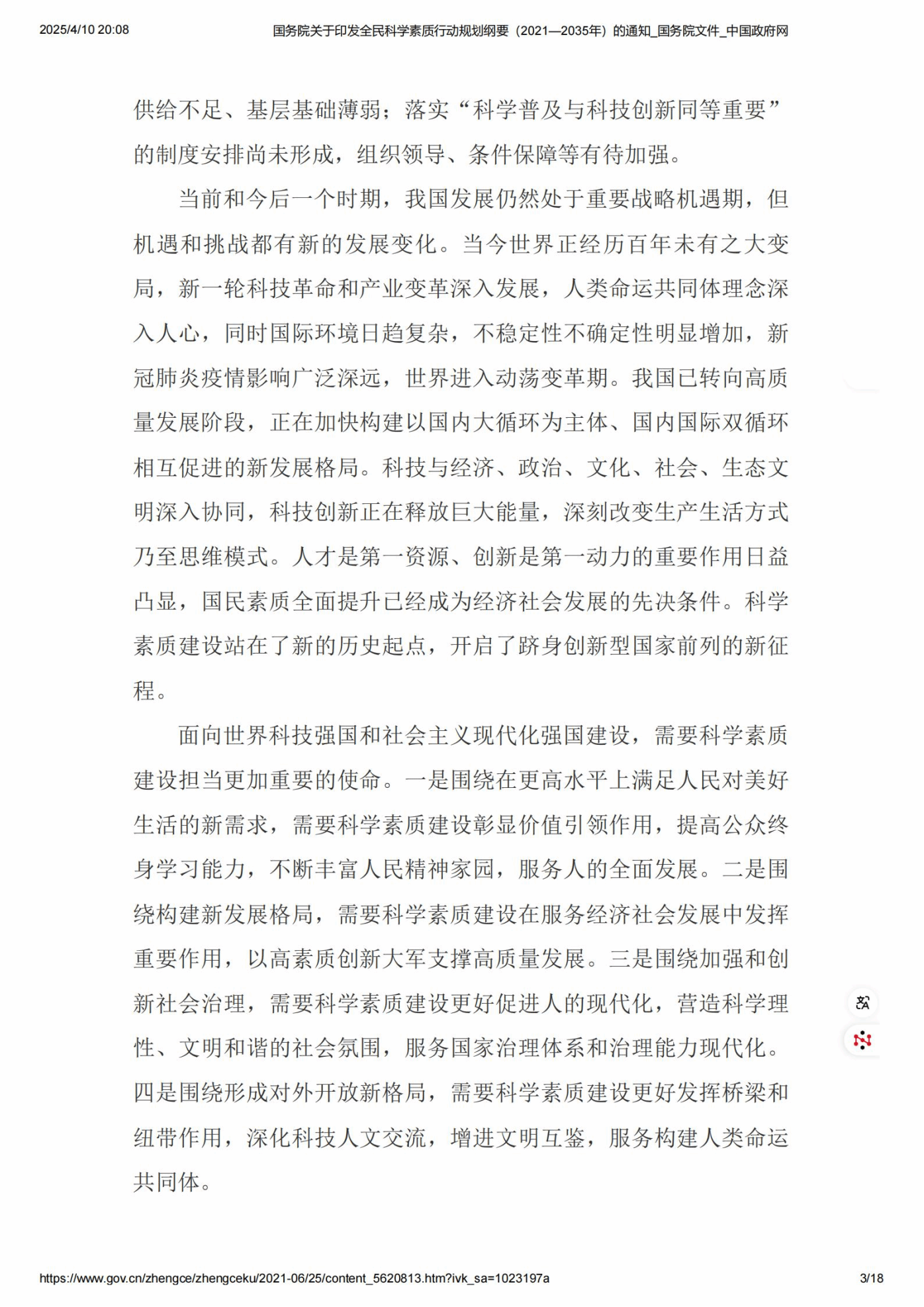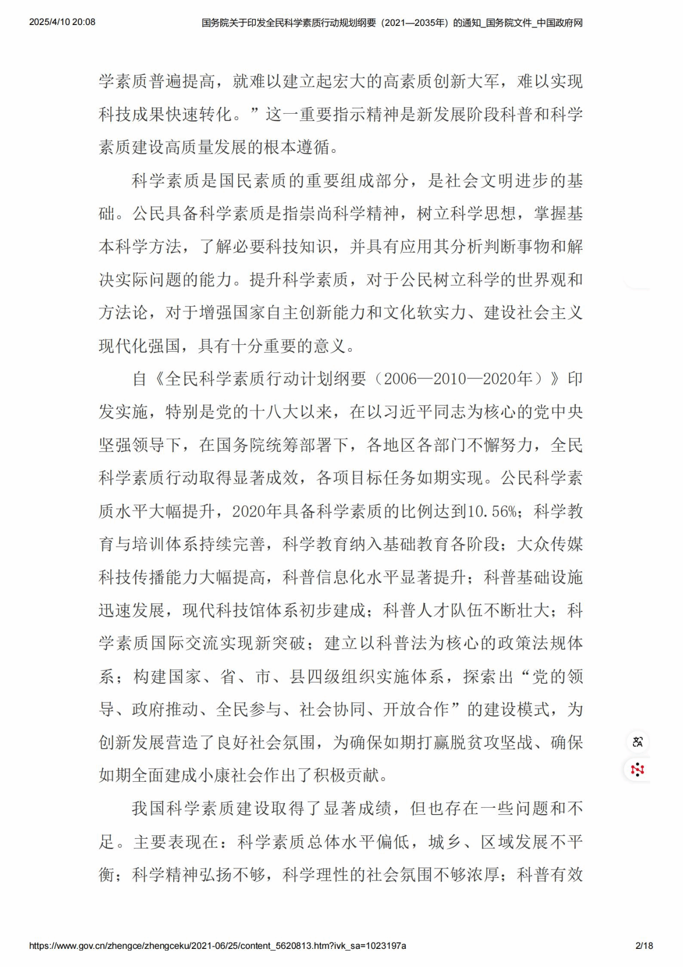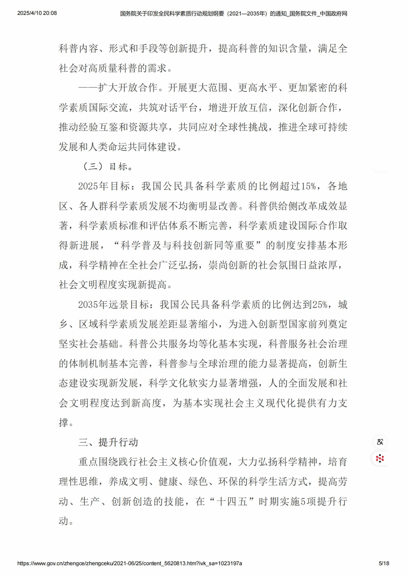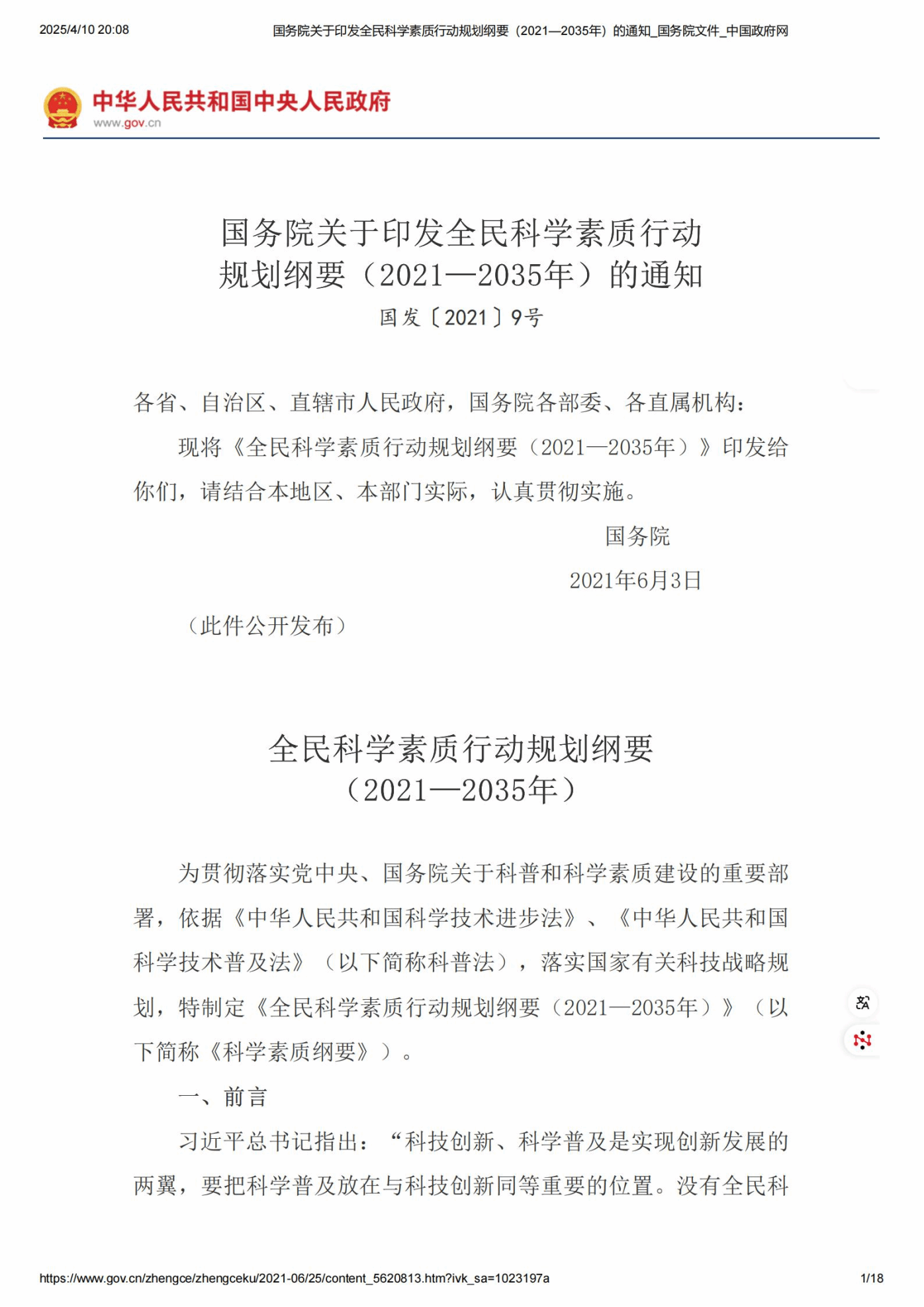 科普强化与全民科学素质提升:国务院关于印发全民科学素质行动 规划纲要(2021—2035年),筑基国家创新与现代化