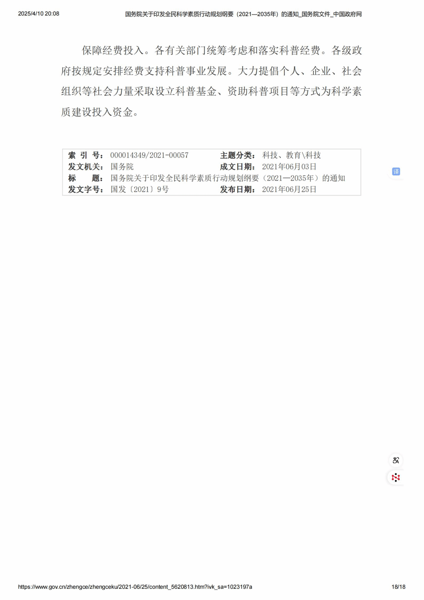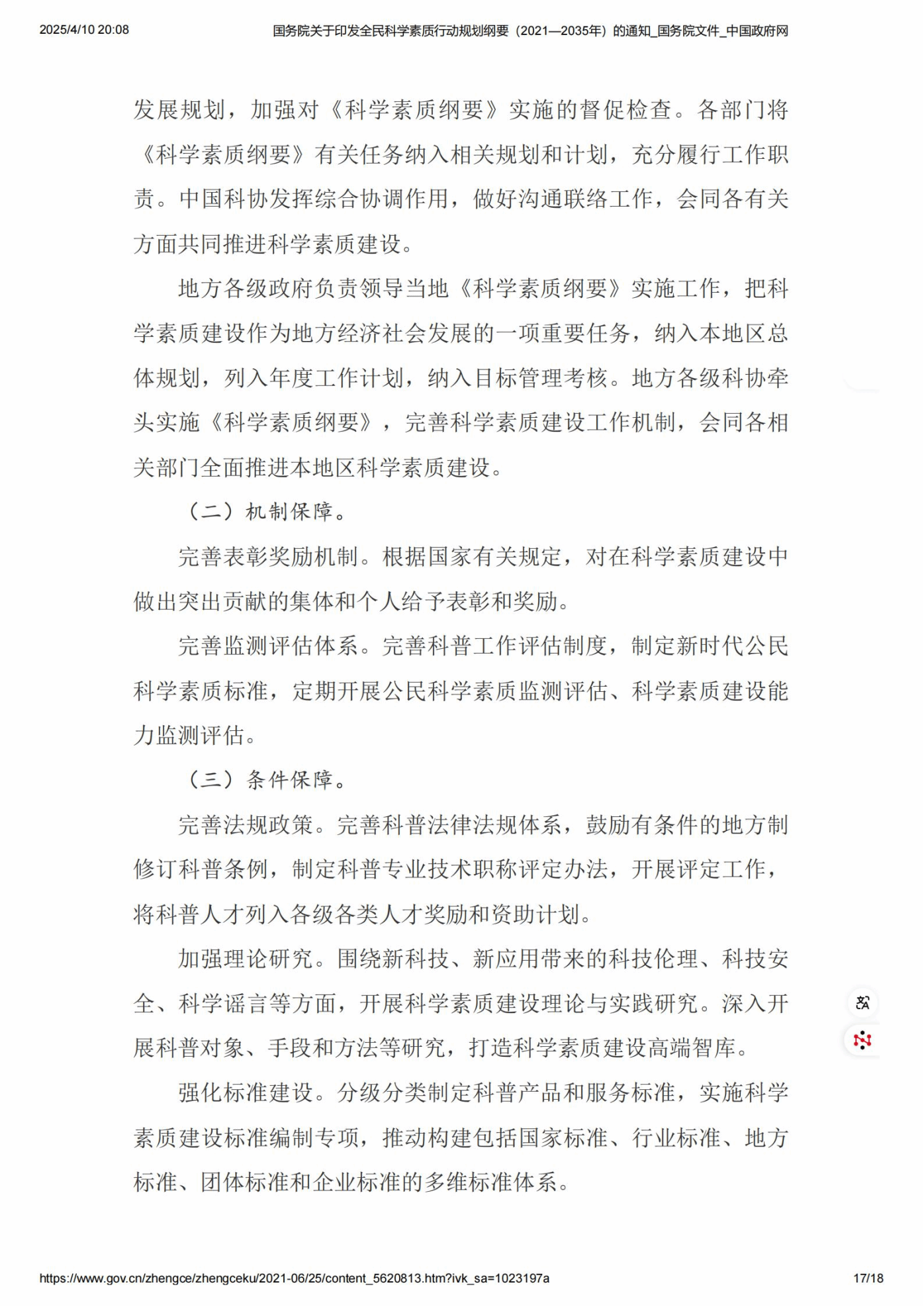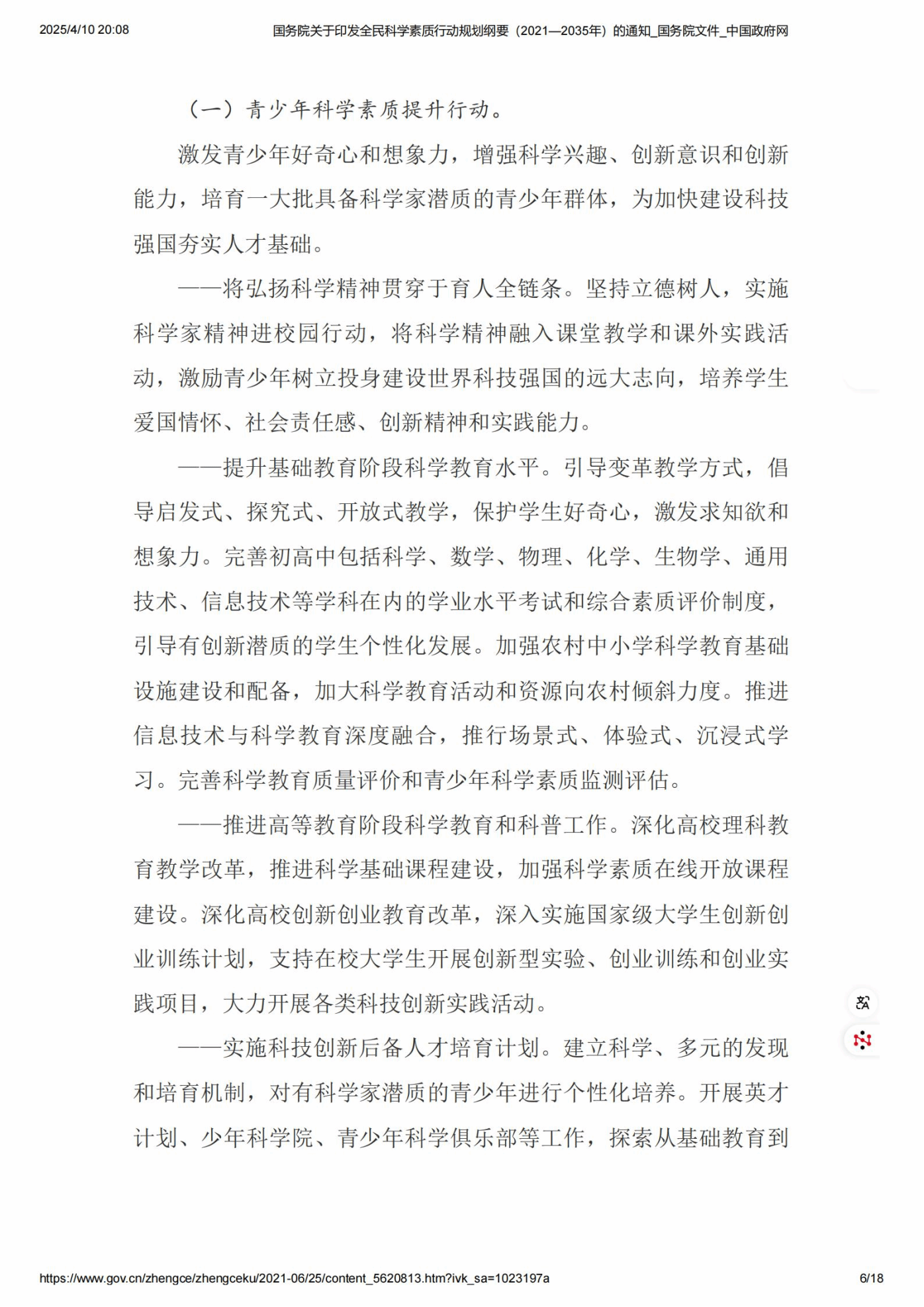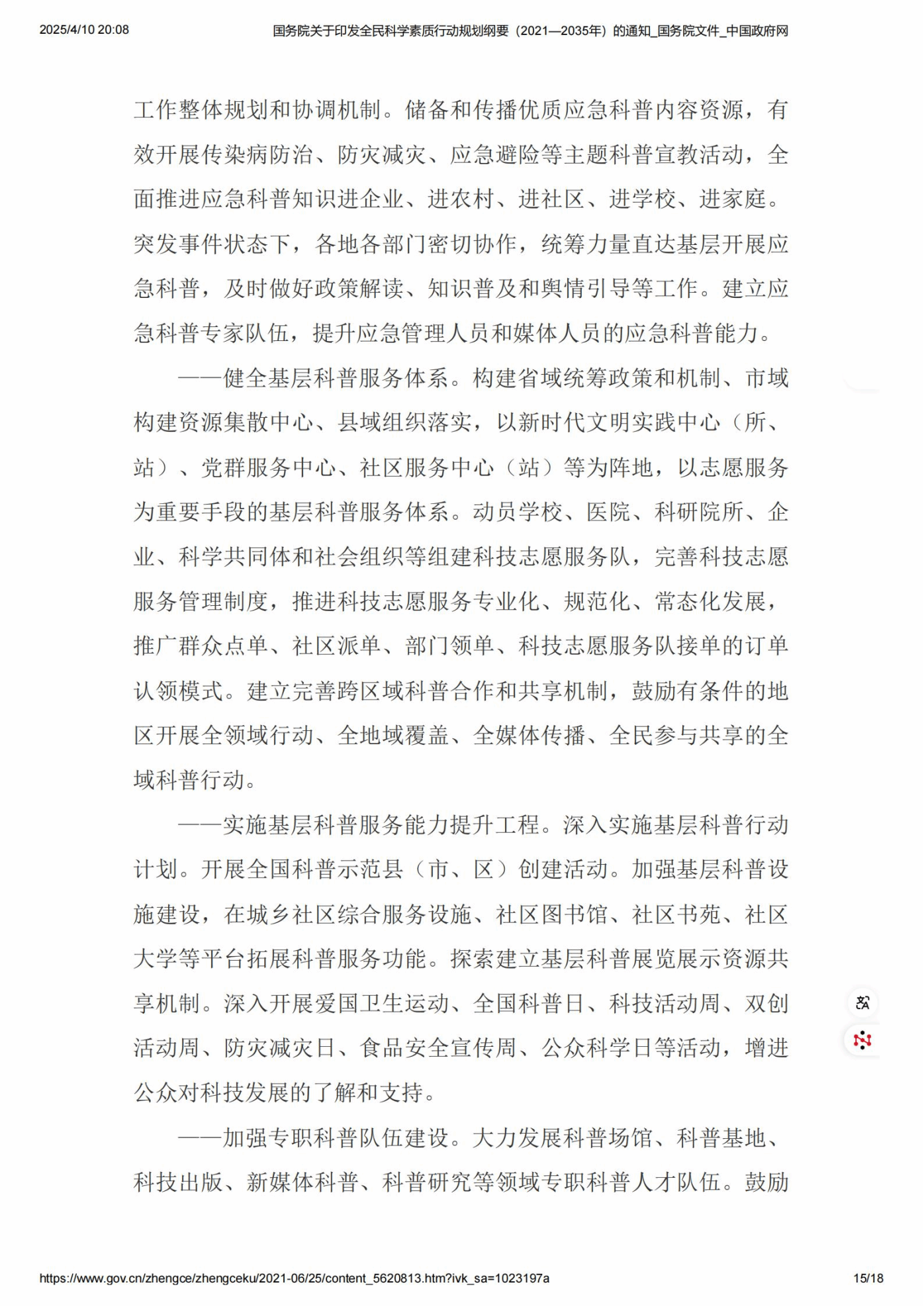 科普强化与全民科学素质提升:国务院关于印发全民科学素质行动 规划纲要(2021—2035年),筑基国家创新与现代化