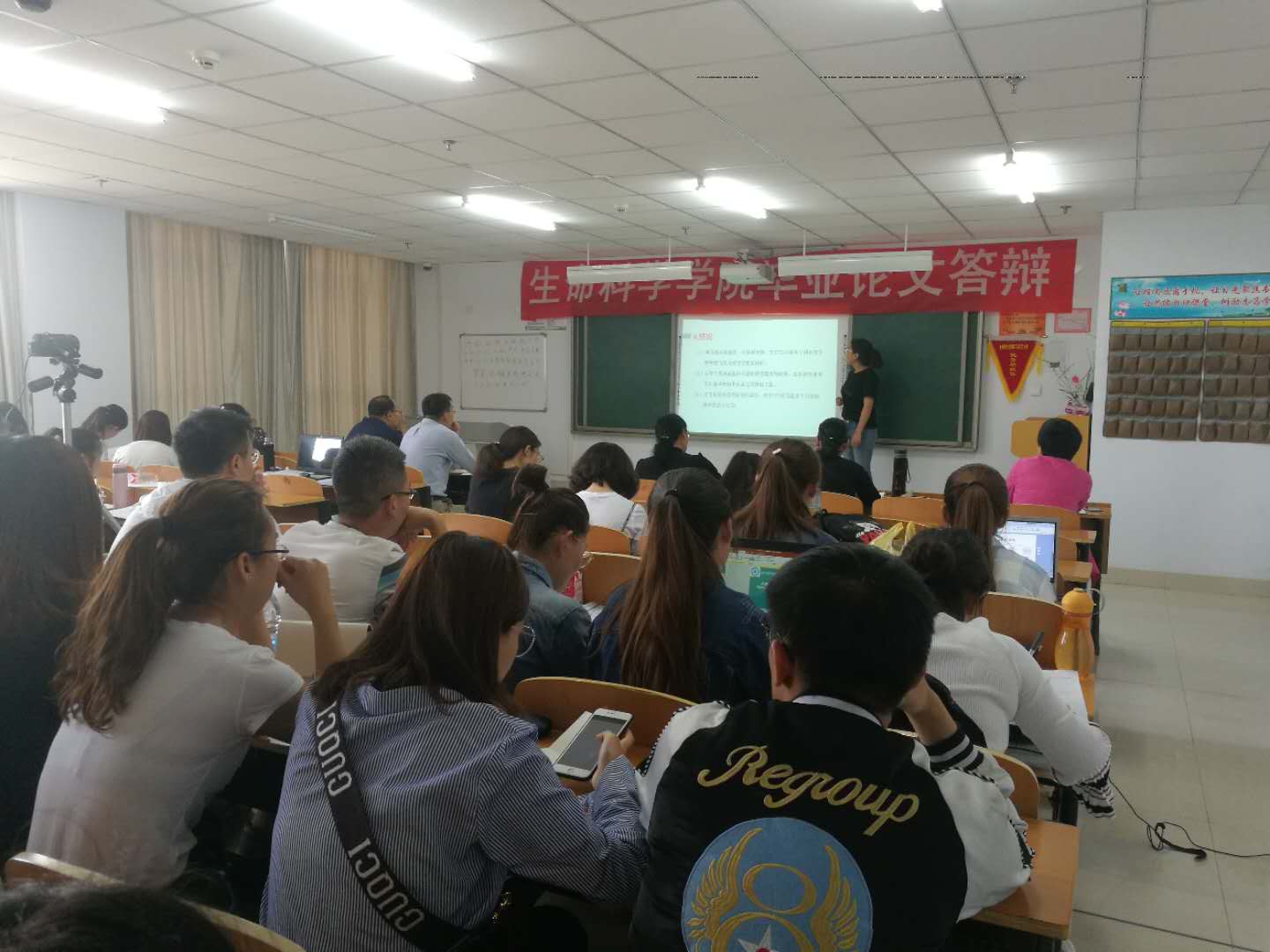 根据我院2014级毕业论文工作方案安排,6月6日和8日进行了2018届毕业生毕业论文答辩工作。任琴院长担任组长,各教研室主任和博士生担任答辩评委。我院2018届本科预毕业生共有125人,其中生物科学专业65人,生物技术专业45人,园艺专业15人。