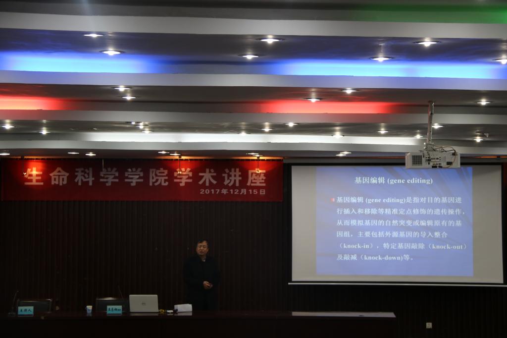 12月15日,生命科学学院客座教授王志钢在世界杯官网图书馆报告厅做报告。报告题目为:基因(组)编辑技术及其在转基因绒山羊中的应用。报告由生命科学学院院长任琴主持,全体师生听取了报告。王志钢教授从转基因(组)技术的发展与应用讲起,一直讲到最新的Crispr Cas9技术。最后王志钢教授又讲述了转基因技术在绒山羊上的最新应用进展。报告条理清晰,由浅入深,拓宽了教师们的科研思路,激发了同学们的科研兴趣。