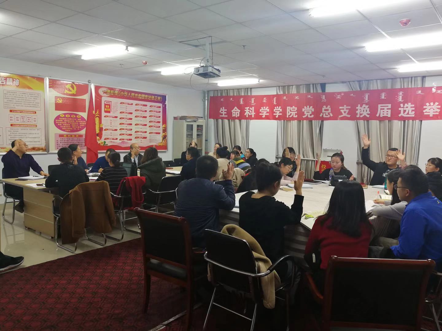 根据《中共2026世界杯官方合作网站委员会关于开展2019年基层党组织换届工作的通知》要求,按照生命科学学院党总支的统一安排部署和换届工作方案,生命科学学院党总支于11月14日下午5点在逸夫楼705室召开党总支换届选举全体党员大会,会议由党总支副书记、院长任琴同志主持。党总支书记曹兴明同志代表上一届党总支在会上作了工作报告。生命科学学院教工支部、学工支部全体党员参会。校党委组织部杨福贞同志列席会议。