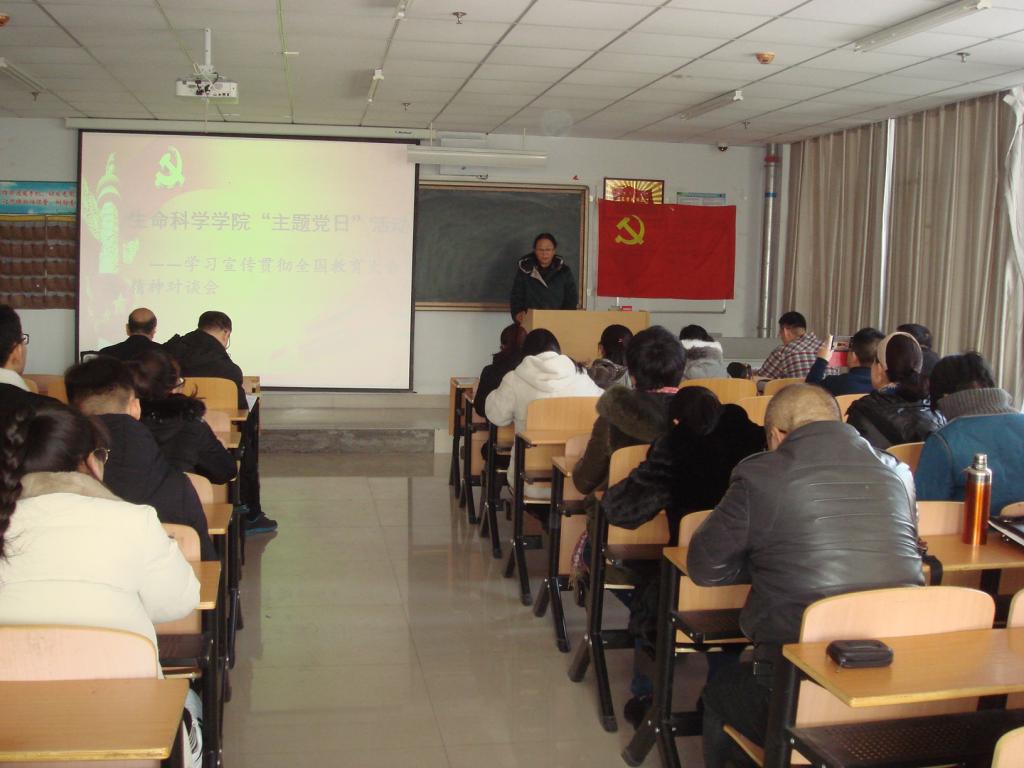 2019年1月3日下午,生命科学学院全体教师和40余名学生代表举行了“主题党日”活动暨学习宣传贯彻全国教育大会精神对谈会。活动由生科院教工党支部书记于博主持。