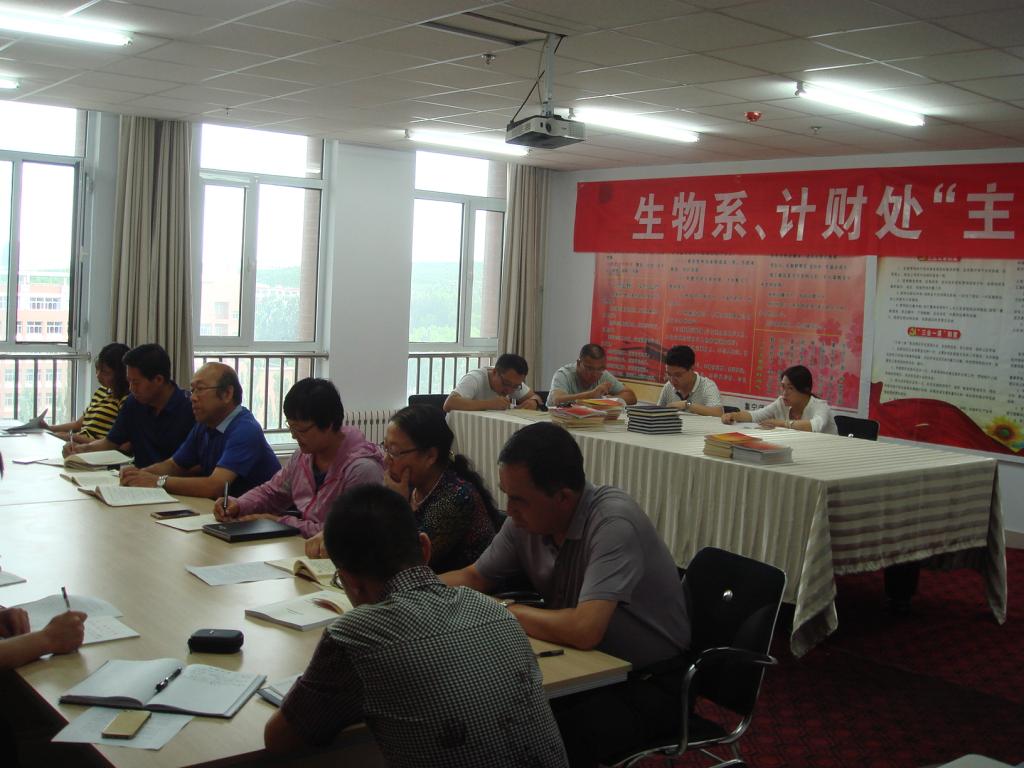 生物系党总支与计财处直属党支部于2017年7月6日下午在生物系党员活动室召开了以“立足各自岗位特点,结合许卫副校长讲党课内容,与大家分享‘两学一做’心得体会”为主题的党员学习研讨会。会议由党总支书记曹兴明主持,生物系和计财处全体党员参加了此次大会。