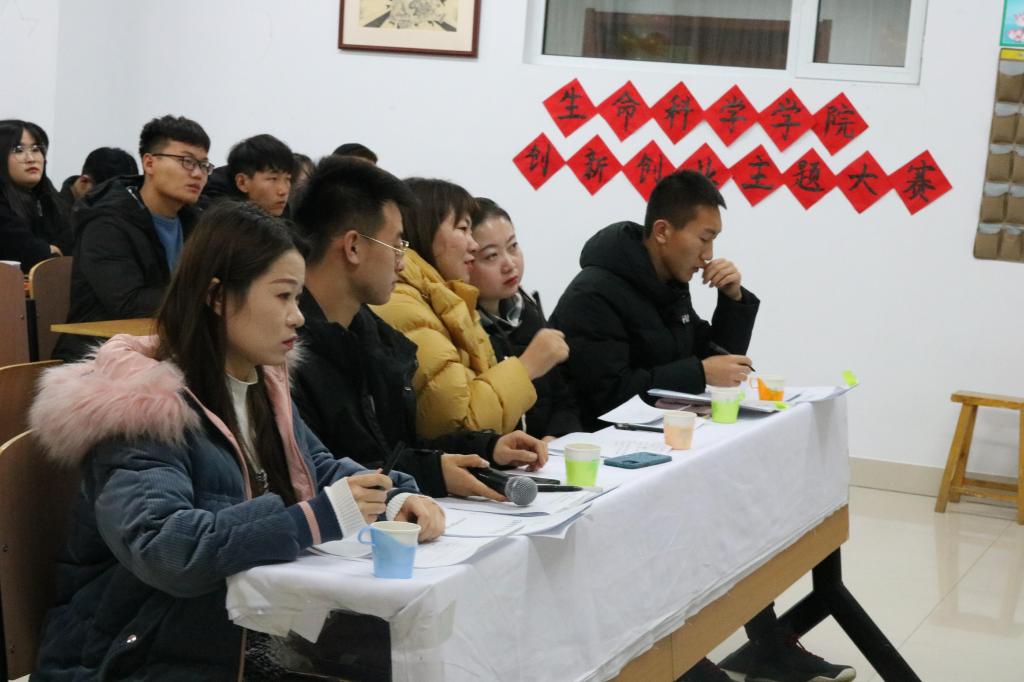 为了提高学生创新创业水平、营造创新创业氛围、激发创新创业精神、弘扬创新创业文化,生命科学学院于2020年12月5日18时10分在逸夫楼109室举办了“创新魅力无限,创业精彩有约”创新创业主题大赛,担任本次大赛的评委有生命科学学院学工办负责人张荟、生命科学学院创新创业大赛指导教师党玉蕾、外国语学院团总支副书记樊春晓、化学与化工学院团总支副书记张志民、化学与化工学院学生会主席赵晓爽,各学院代表及生命科学学院学生会全体成员观摩比赛。