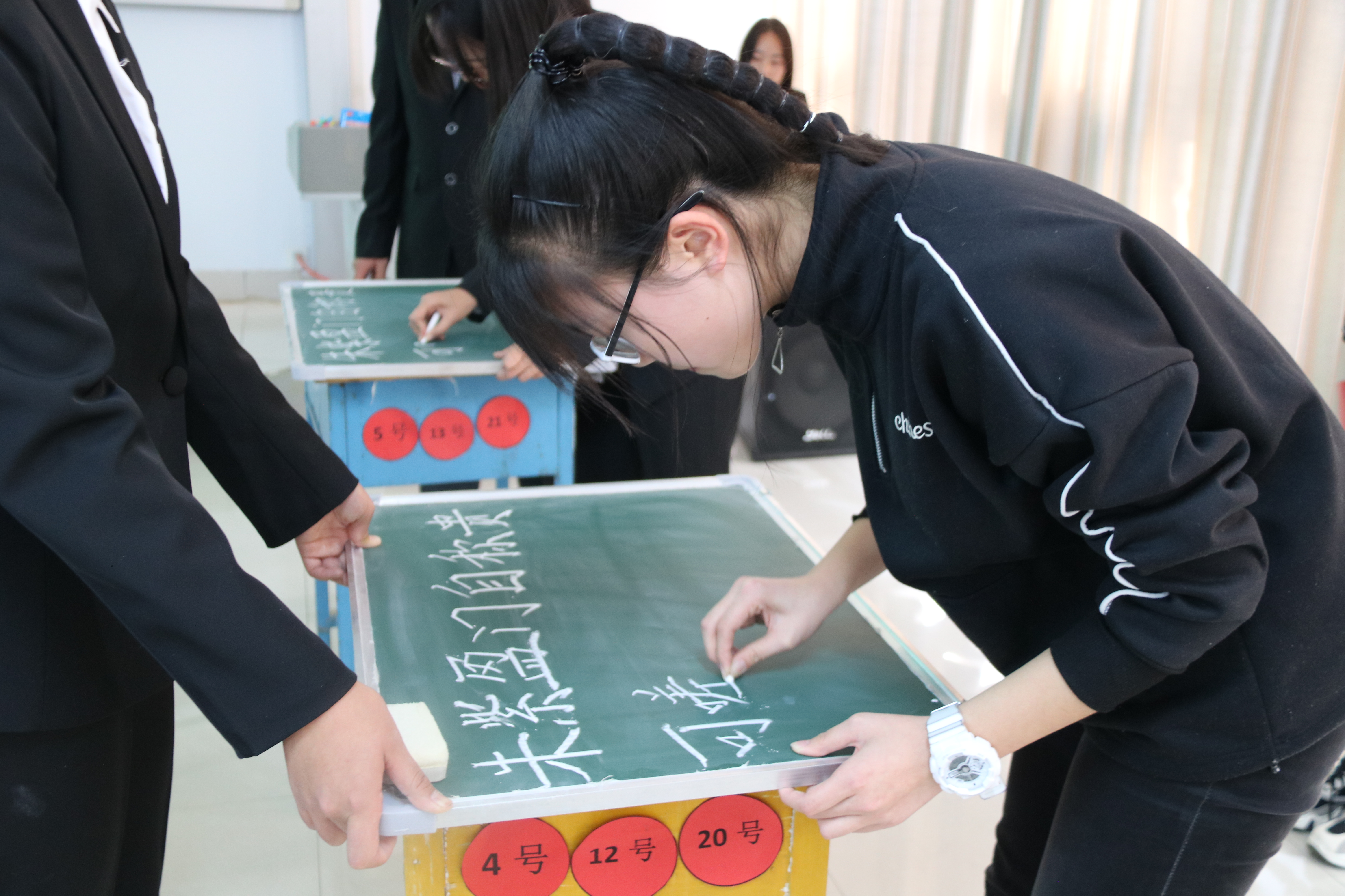 书法雅尚,翰墨千秋。大赛共分为粉笔字书写、硬笔字展示、毛笔字书写三个环节。要求选手根据所提供的书写材料进行书写,每个环节都是情感于实力的迸发。