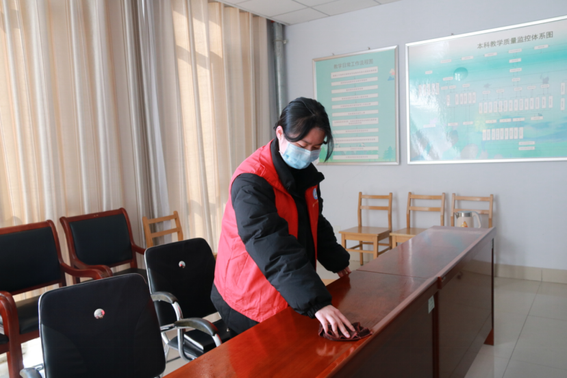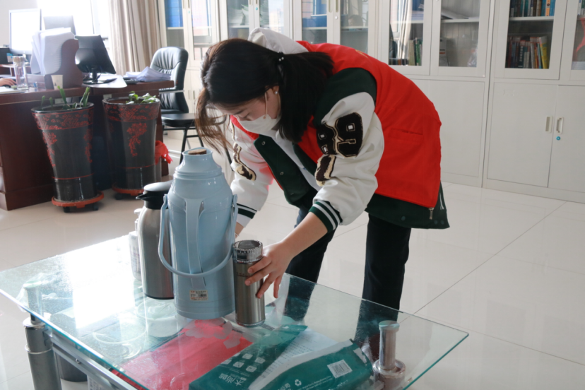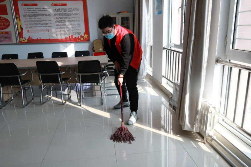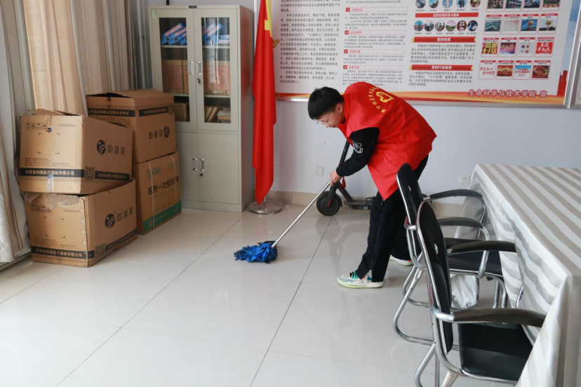 在邱涛的带领下,全体学生干部对逸夫楼的教学场所、文化场所、教师办公室进行卫生清洁。擦拭门框、整理桌面、摆放桌椅、扫地、拖地,做到了全域清洁,不留死角。学生干部充分发挥模范带头作用,警示大家爱护环境,维护公共卫生,激发了同学们的公共意识和服务意识。