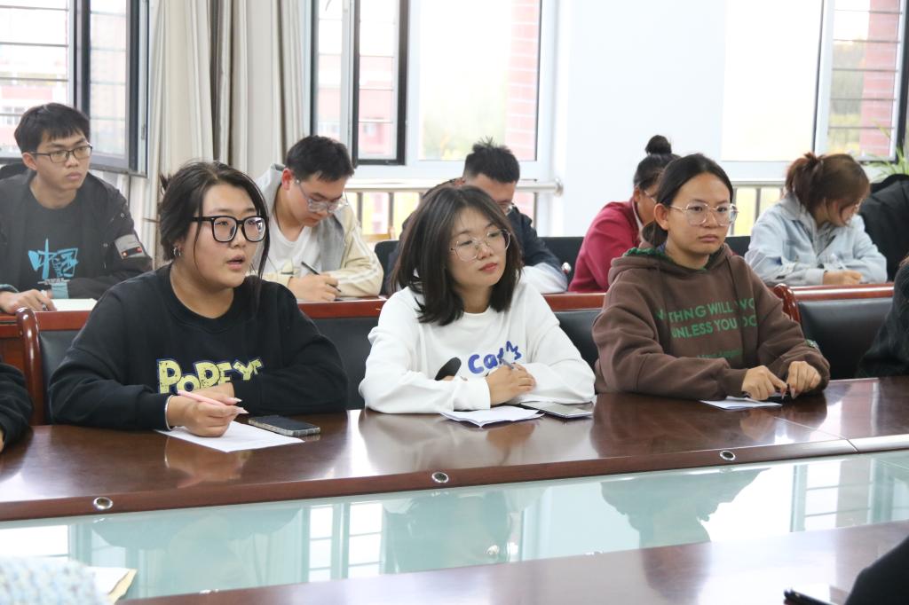 为及时掌握学生思想动态,把握学生关心关注的热点难点问题,进一步提高大学生思想政治教育工作的针对性和实效性,我院于10月12日组织召开了2023--2024学年第一学期大学生思想动态调研会。本次会议由团总支书记张荟主持,党总支书记夏学利、院长穆俊祥、党总支副书记张明东、副院长韩海霞及各班级学生干部代表、普通学生代表和少数民族学生代表参会。