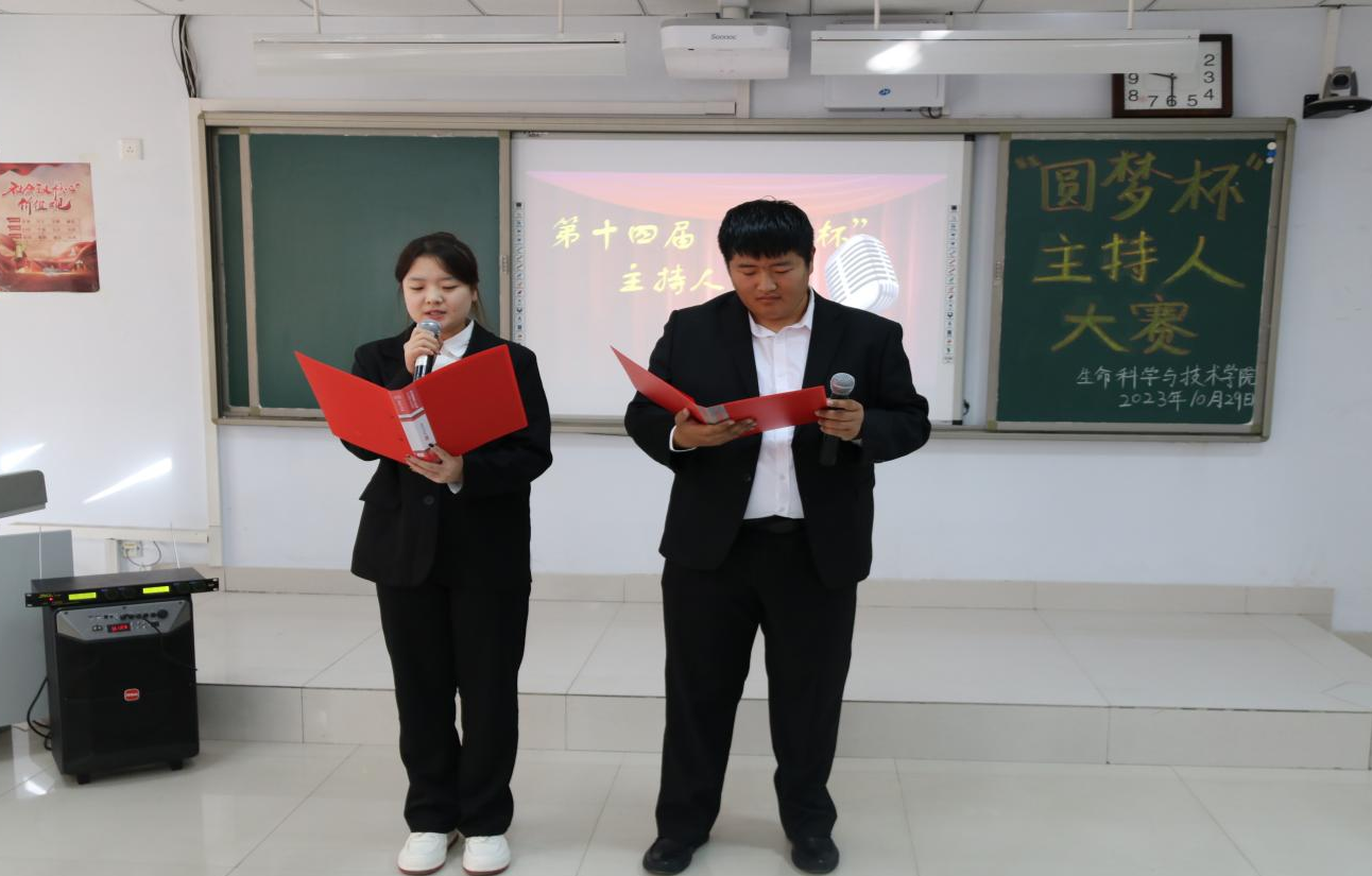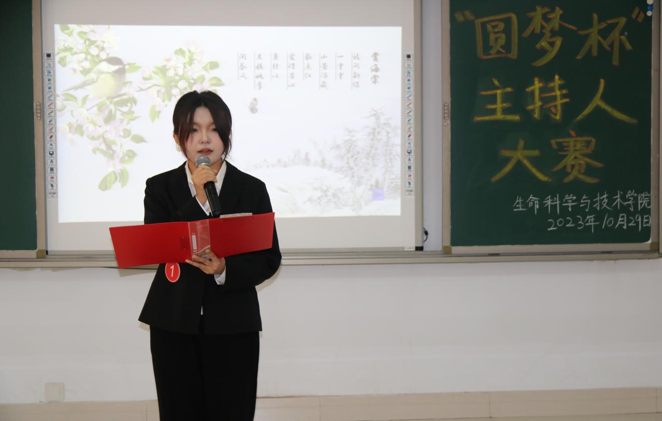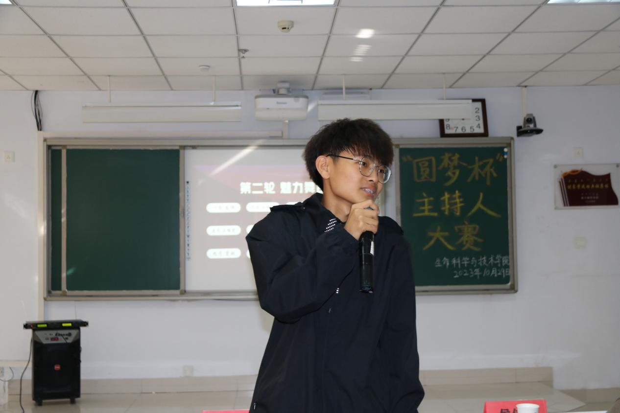 为深入学习贯彻党的二十大精神和习近平新时代中国特色社会主义思想,坚定不移推广普及国家通用语言文字,不断提高学生人文道德素养,充分展现学生青春风采,生命科学与技术学院于2023年10月29日在逸夫楼209室举办第十四届“圆梦杯”主持人大赛。担任本次大赛的评委有物理与电子信息工程学院学生会执行主席施慧波和主席团成员董俊杰,以及生命科学与技术学院团总支副书记张慧、青协分会会长侯佳雪、主席团成员金轩宇,我院学生会全体成员和学生代表观看了本次比赛。