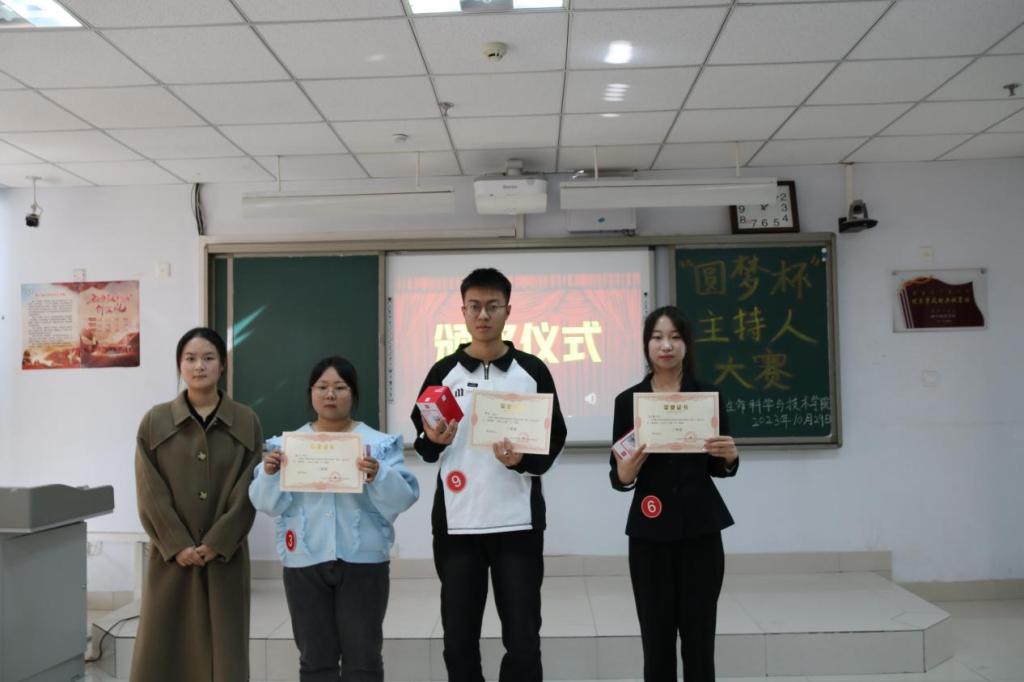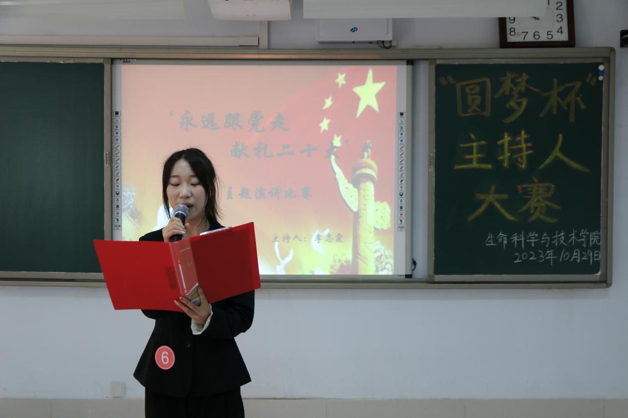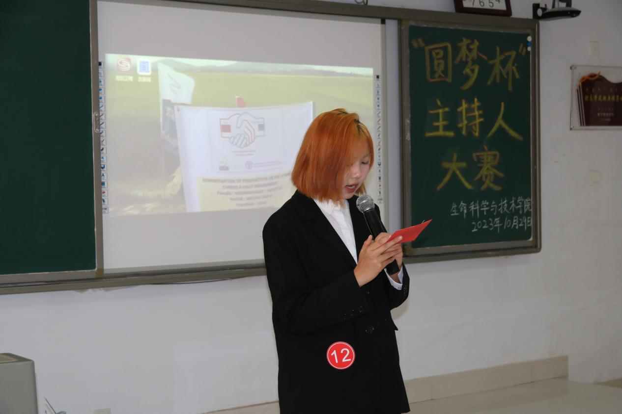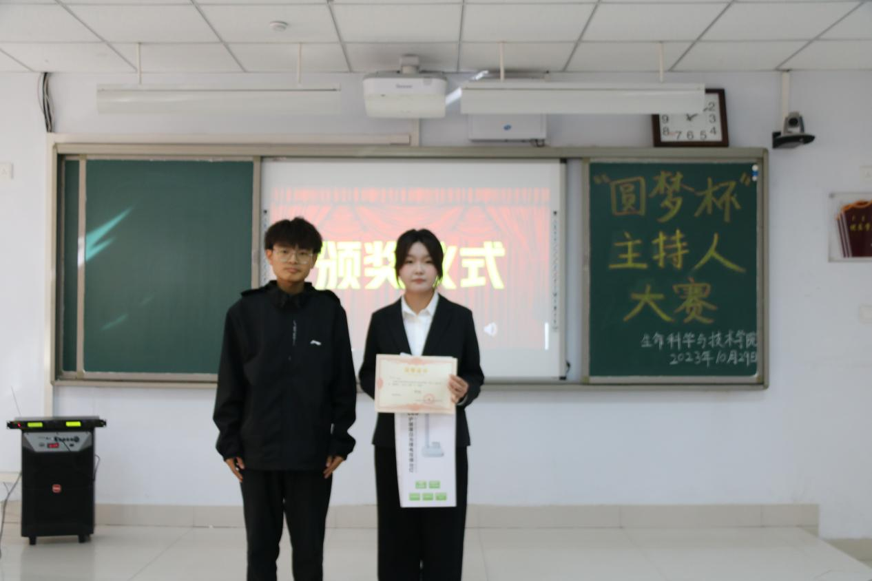 为深入学习贯彻党的二十大精神和习近平新时代中国特色社会主义思想,坚定不移推广普及国家通用语言文字,不断提高学生人文道德素养,充分展现学生青春风采,生命科学与技术学院于2023年10月29日在逸夫楼209室举办第十四届“圆梦杯”主持人大赛。担任本次大赛的评委有物理与电子信息工程学院学生会执行主席施慧波和主席团成员董俊杰,以及生命科学与技术学院团总支副书记张慧、青协分会会长侯佳雪、主席团成员金轩宇,我院学生会全体成员和学生代表观看了本次比赛。