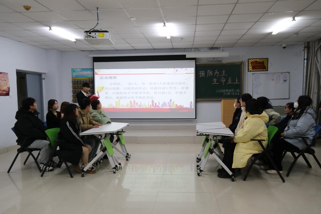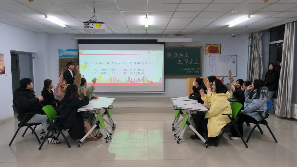 为提高学生的消防安全意识和自防自救能力,加强校园消防安全建设,营造和谐的校园环境,我院各班级结合“11•9消防宣传月”开展了“预防为主,生命至上”主题班会,积极宣传消防安全知识。各班级借助图片、视频与理论相结合的方式介绍了防火技巧和应对措施,此次主题班会加强了同学们的消防安全意识,掌握了必要逃生技能。