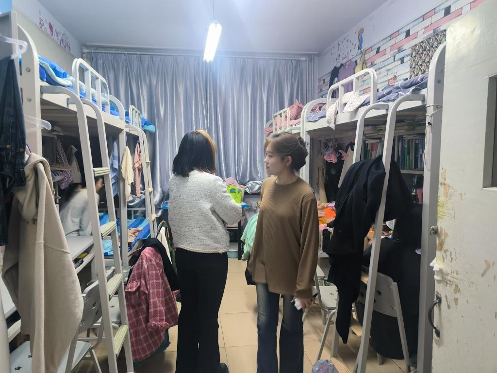 重点检查了宿舍内有无大功率用电器和插排使用状况、是否堆放易燃物品等。检查发现,大部分宿舍总体情况良好,地面无杂物堆积,物品摆放有序。个别宿舍仍存在物品摆放杂乱、插座易冒火星等情况。针对存在安全及卫生问题的宿舍,检查人员及时提出了修整意见并向管理人员上报,杜绝了寝室安全隐患。