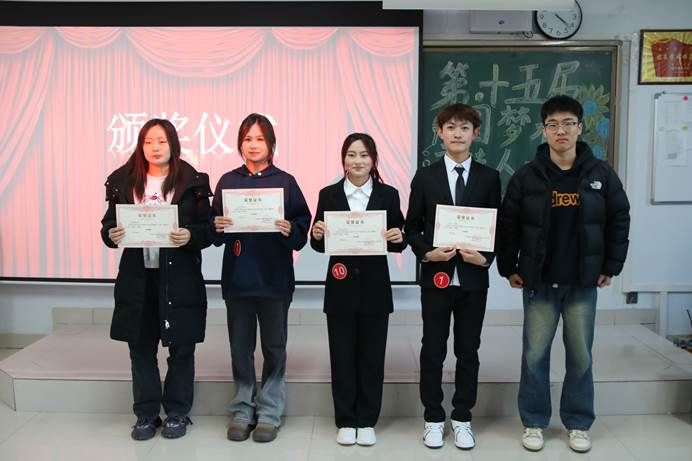 为锻炼学生综合能力,丰富校园文化生活,生命科学与技术学院于12月7日在逸夫楼201室成功举办第十五届“圆梦杯”主持人比赛。我院学工办老师刘泰、团总支副书记卜文华、学生会主席团成员马雨辰担任本次比赛评委。