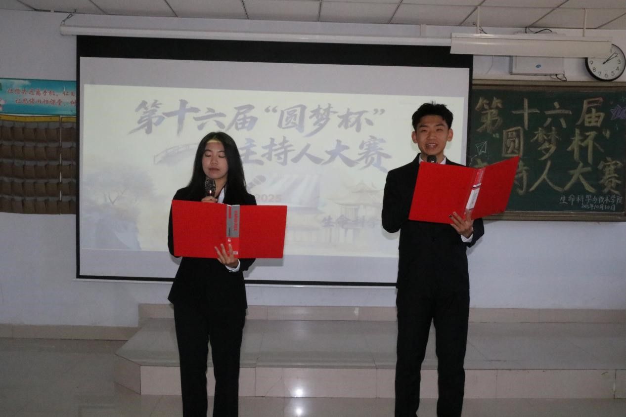 为丰富大学生的课余文化生活,展现自我风采,生命科学与技术学院于10月30日下午在逸夫楼201室成功举办第十六届“圆梦杯”主持人大赛。校团委刘佳敏、学团办公室主任张荟和辅导员董雅群担任本次大赛评委。