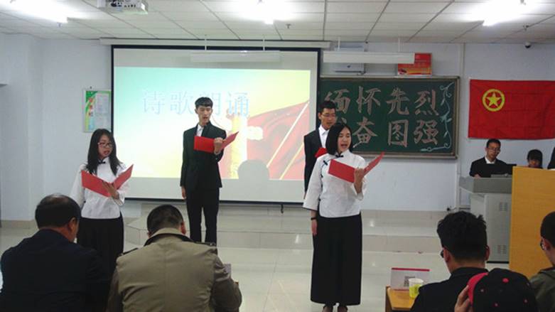 同学们用自己的真情实感,热情讴歌了少年英雄王二小、刘胡兰、民族英雄杨靖宇、方志敏等等不计其数的革命先烈。他们声情并茂、激情飞扬的诗歌朗诵获得了师生们的阵阵掌声。