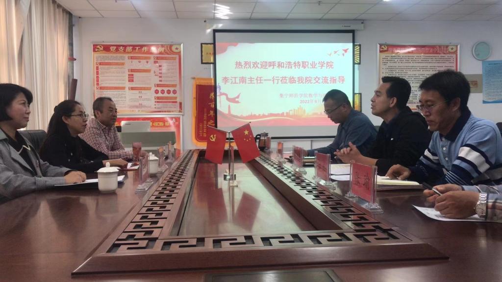 9月22日,呼和浩特职业学院师范部主任李江南、师范部数学教育教研室主任江像评、师范部教师祁秋菊来世界杯官网数学与统计学院进行交流调研。学院班子成员及部分教师参加了交流座谈。