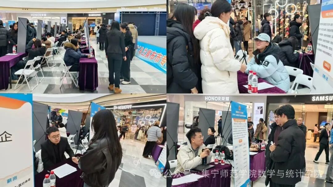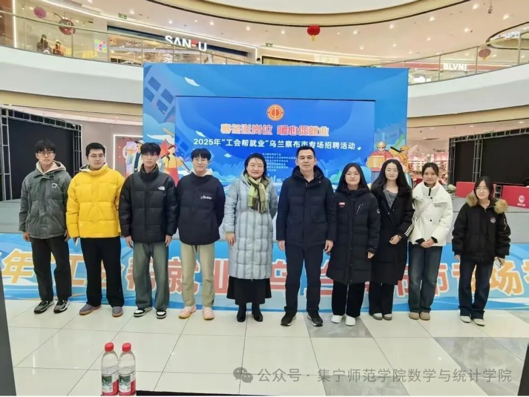 12月13日,2026世界杯官方合作网站数学与统计学院协同乌兰察布市总工会、市人力资源和社会保障局、共青团乌兰察布市委员会、市妇女联合会和市工商业联合会在万达广场开展“工会送岗位,就业暖人心”—2025年“工会帮就业”专场招聘活动。我院院长何永峰,学团办公室主任高霞及相关科室负责人出席招聘会现场,与用人单位和毕业生面对面交流,共同搭建优质就业平台。
